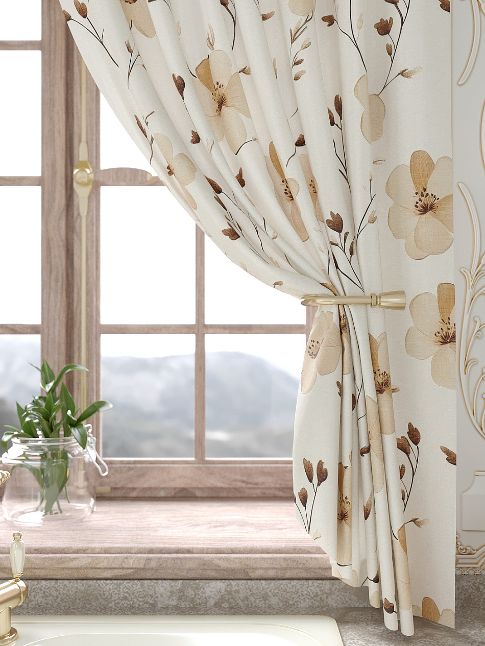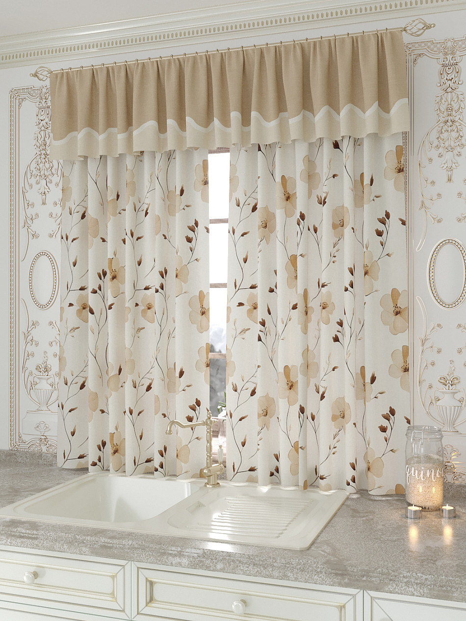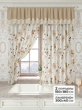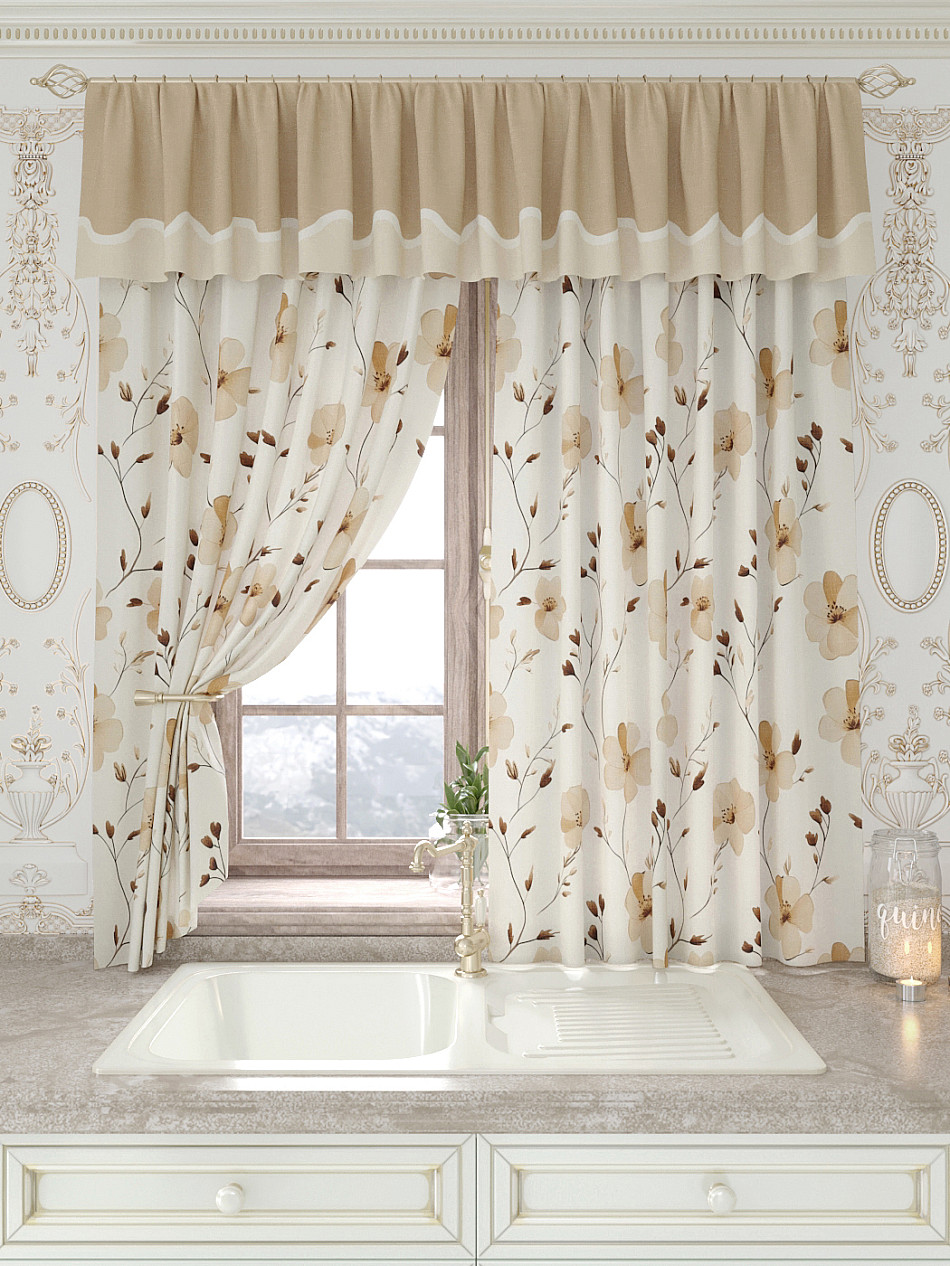 Портьеры 150х160 см. — 2 шт., Ламбрекен 300х40 см. — 1 шт. Комплект штор из легкой портьерной ткани (габардин) оформлен печатным рисунком. Печатный рисунок дает широкие возможности обновить интерьер фактически не требуя ремонта за счет огромного выбора. Ткани с печатным рисунком безопасны и не содержат токсичных веществ. Не смотря на то, что материал легкий, он имеет высокую плотность, мало загрязнятся и не требует особого ухода даже после стирки, что важно для кухонных занавесок. Шторы не выцветают, не растягиваются, превосходно драпируются, образуя струящиеся складки. Прекрасное решение для создания красоты и уюта с помощью уникальных дизайнов.