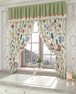 Портьеры 150х160 см. — 2 шт., Ламбрекен 300х40 см. — 1 шт. Комплект штор из легкой портьерной ткани (габардин) оформлен печатным рисунком. Печатный рисунок дает широкие возможности обновить интерьер фактически не требуя ремонта за счет огромного выбора. Ткани с печатным рисунком безопасны и не содержат токсичных веществ. Не смотря на то, что материал легкий, он имеет высокую плотность, мало загрязнятся и не требует особого ухода даже после стирки, что важно для кухонных занавесок. Шторы не выцветают, не растягиваются, превосходно драпируются, образуя струящиеся складки. Прекрасное решение для создания красоты и уюта с помощью уникальных дизайнов.