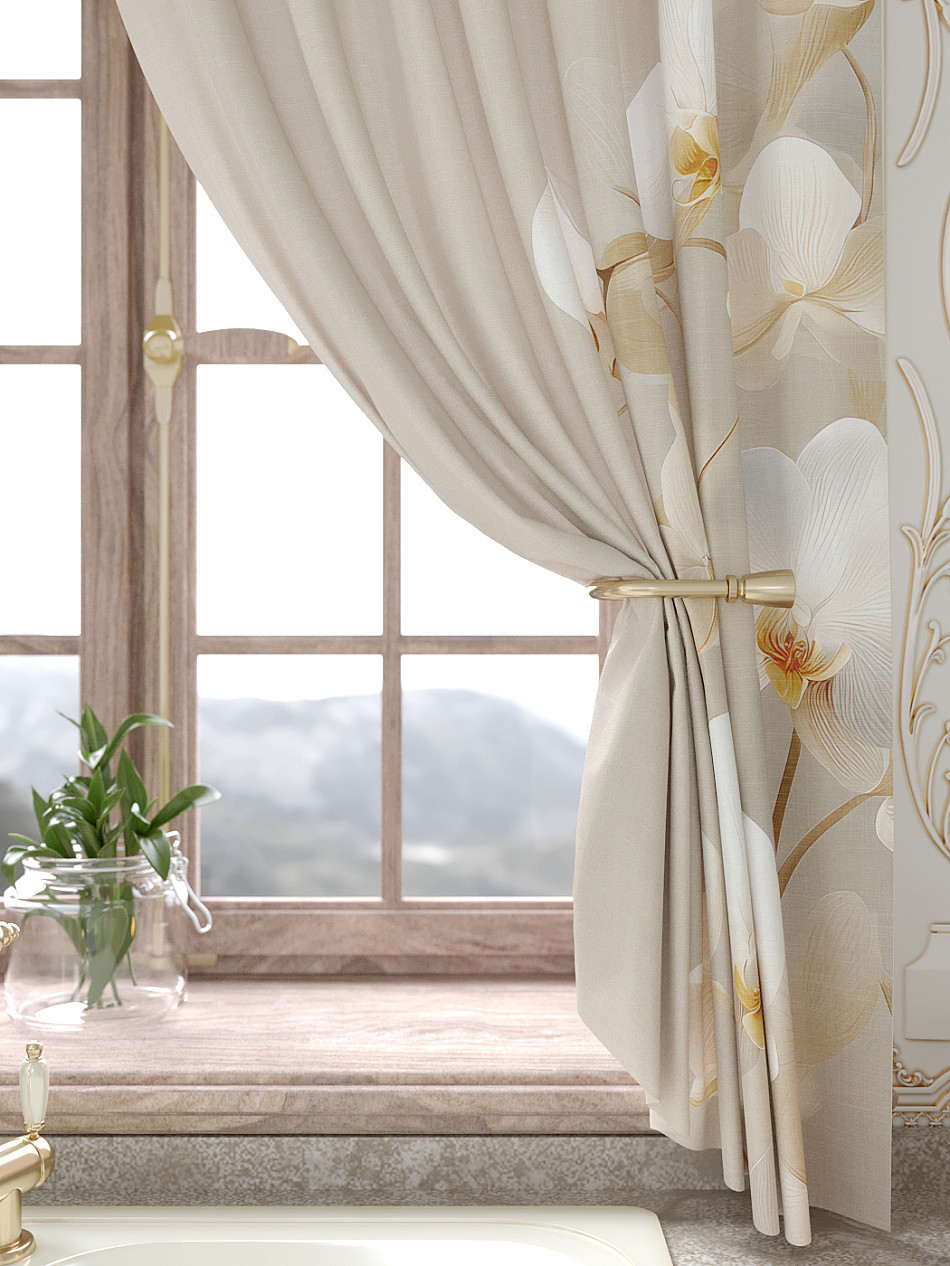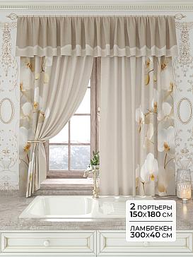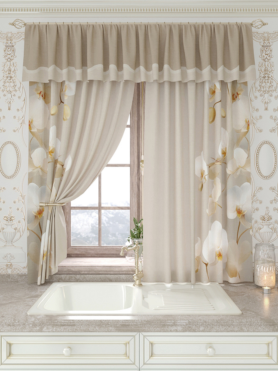 Портьеры 150х160 см. — 2 шт., Ламбрекен 300х40 см. — 1 шт. Комплект штор из легкой портьерной ткани (габардин) оформлен печатным рисунком. Печатный рисунок дает широкие возможности обновить интерьер фактически не требуя ремонта за счет огромного выбора. Ткани с печатным рисунком безопасны и не содержат токсичных веществ. Не смотря на то, что материал легкий, он имеет высокую плотность, мало загрязнятся и не требует особого ухода даже после стирки, что важно для кухонных занавесок. Шторы не выцветают, не растягиваются, превосходно драпируются, образуя струящиеся складки. Прекрасное решение для создания красоты и уюта с помощью уникальных дизайнов.