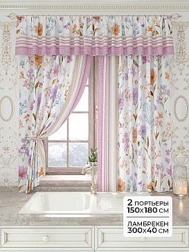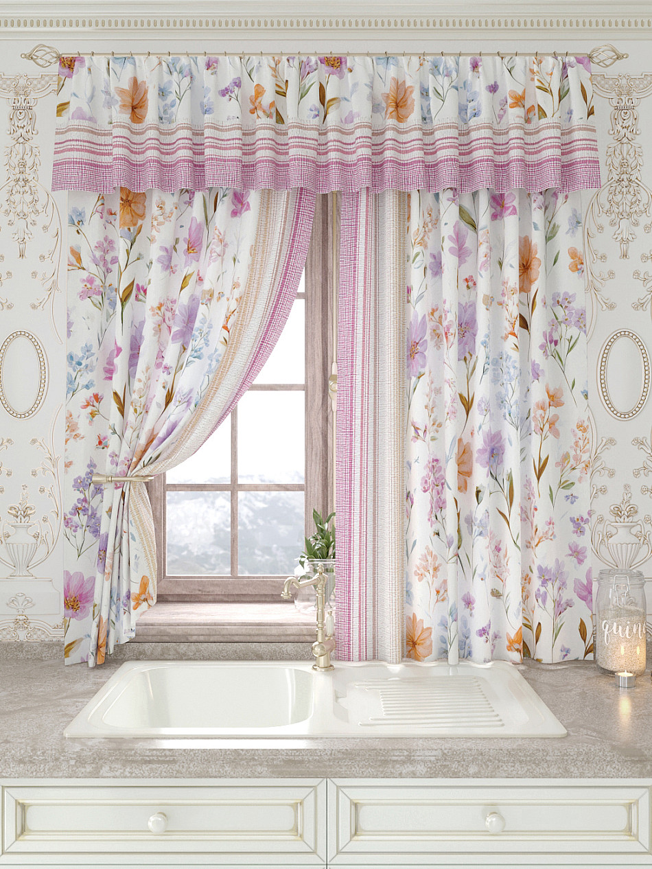 Портьеры 150х160 см. — 2 шт., Ламбрекен 300х40 см. — 1 шт. Комплект штор из легкой портьерной ткани (габардин) оформлен печатным рисунком. Печатный рисунок дает широкие возможности обновить интерьер фактически не требуя ремонта за счет огромного выбора. Ткани с печатным рисунком безопасны и не содержат токсичных веществ. Не смотря на то, что материал легкий, он имеет высокую плотность, мало загрязнятся и не требует особого ухода даже после стирки, что важно для кухонных занавесок. Шторы не выцветают, не растягиваются, превосходно драпируются, образуя струящиеся складки. Прекрасное решение для создания красоты и уюта с помощью уникальных дизайнов.
