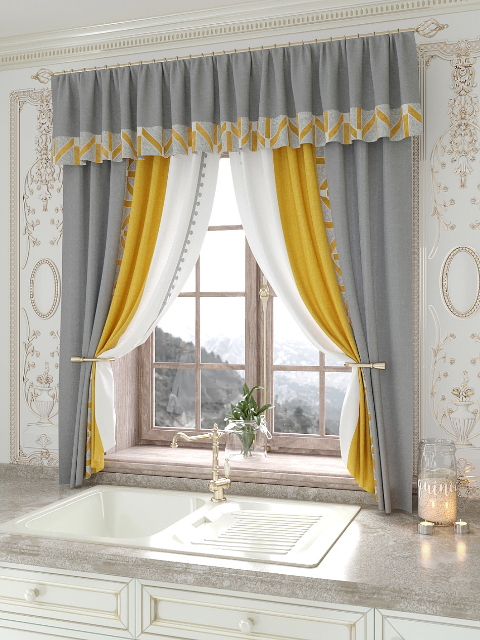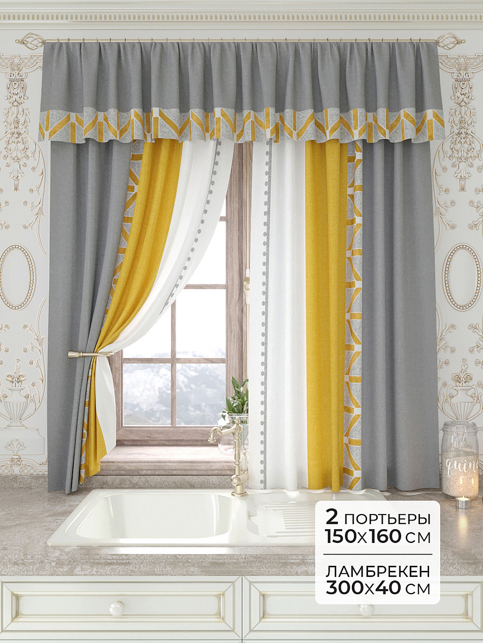 Портьеры 150х160 см. — 2 шт., Ламбрекен 300х40 см. — 1 шт. Комплект штор из легкой портьерной ткани (габардин) оформлен печатным рисунком. Печатный рисунок дает широкие возможности обновить интерьер фактически не требуя ремонта за счет огромного выбора. Ткани с печатным рисунком безопасны и не содержат токсичных веществ. Не смотря на то, что материал легкий, он имеет высокую плотность, мало загрязнятся и не требует особого ухода даже после стирки, что важно для кухонных занавесок. Шторы не выцветают, не растягиваются, превосходно драпируются, образуя струящиеся складки. Прекрасное решение для создания красоты и уюта с помощью уникальных дизайнов.
