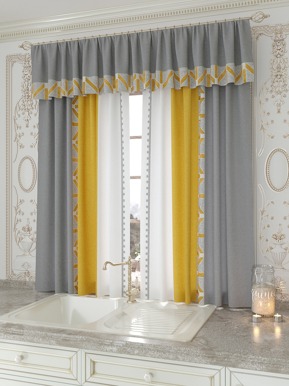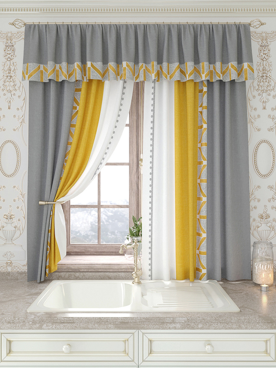 Портьеры 150х160 см. — 2 шт., Ламбрекен 300х40 см. — 1 шт. Комплект штор из легкой портьерной ткани (габардин) оформлен печатным рисунком. Печатный рисунок дает широкие возможности обновить интерьер фактически не требуя ремонта за счет огромного выбора. Ткани с печатным рисунком безопасны и не содержат токсичных веществ. Не смотря на то, что материал легкий, он имеет высокую плотность, мало загрязнятся и не требует особого ухода даже после стирки, что важно для кухонных занавесок. Шторы не выцветают, не растягиваются, превосходно драпируются, образуя струящиеся складки. Прекрасное решение для создания красоты и уюта с помощью уникальных дизайнов.