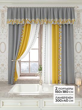 - Состав комплекта Портьеры 150х160 см. — 2 шт., Ламбрекен 300х40 см. — 1 шт.