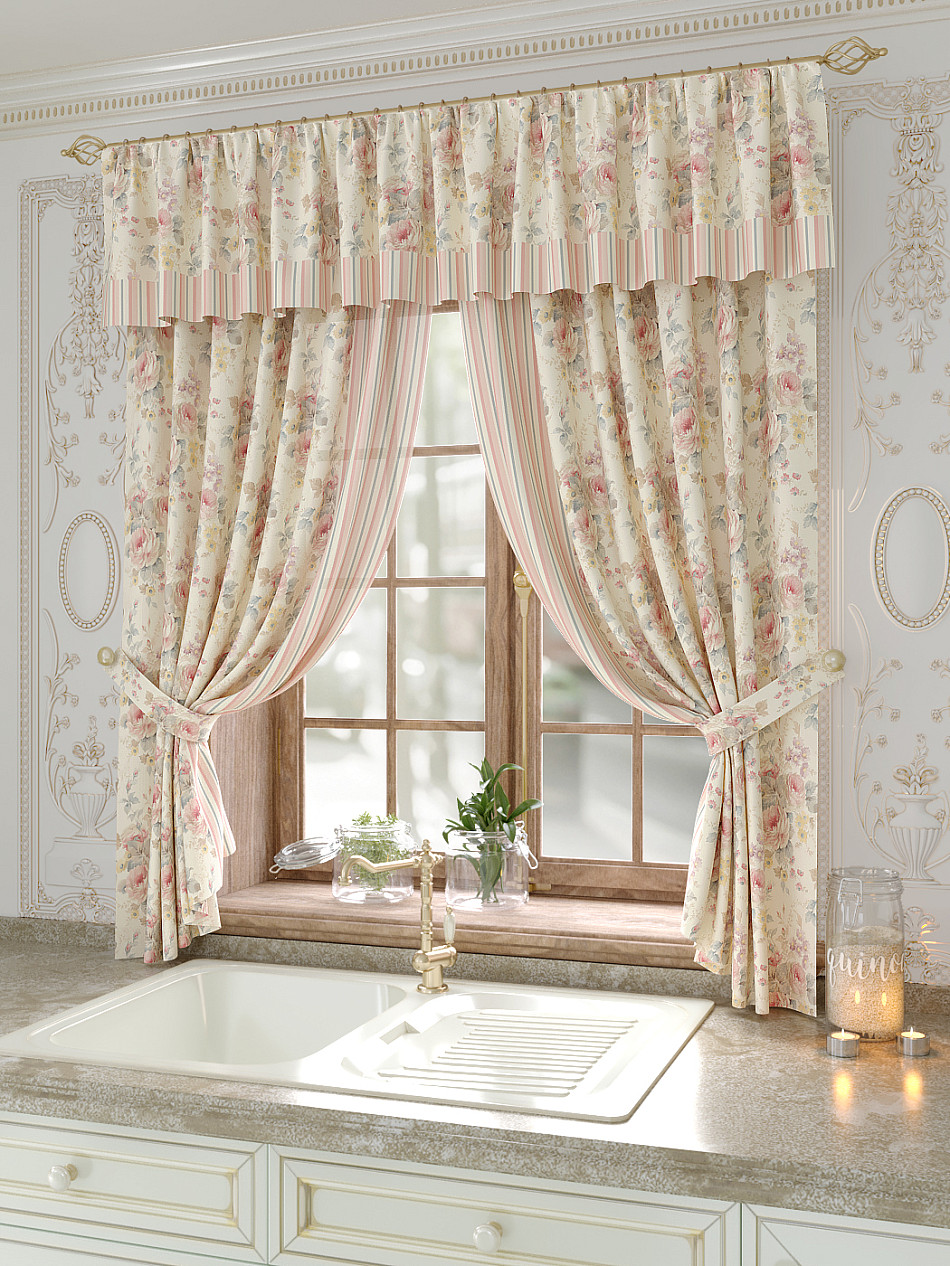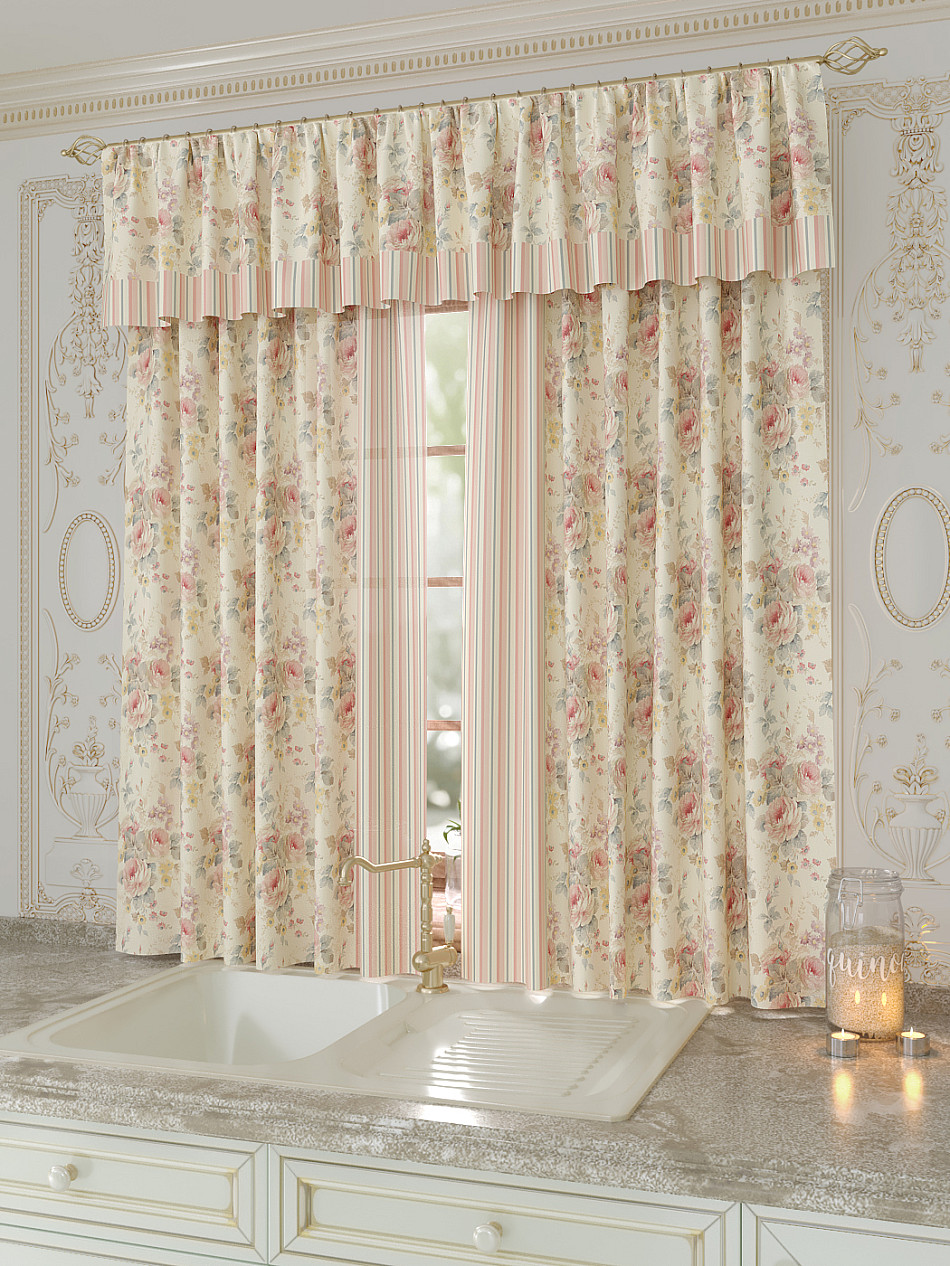 Портьеры 150х160 см. — 2 шт., Ламбрекен 300х40 см. — 1 шт. Комплект штор из легкой портьерной ткани (габардин) оформлен печатным рисунком. Печатный рисунок дает широкие возможности обновить интерьер фактически не требуя ремонта за счет огромного выбора. Ткани с печатным рисунком безопасны и не содержат токсичных веществ. Не смотря на то, что материал легкий, он имеет высокую плотность, мало загрязнятся и не требует особого ухода даже после стирки, что важно для кухонных занавесок. Шторы не выцветают, не растягиваются, превосходно драпируются, образуя струящиеся складки. Прекрасное решение для создания красоты и уюта с помощью уникальных дизайнов.