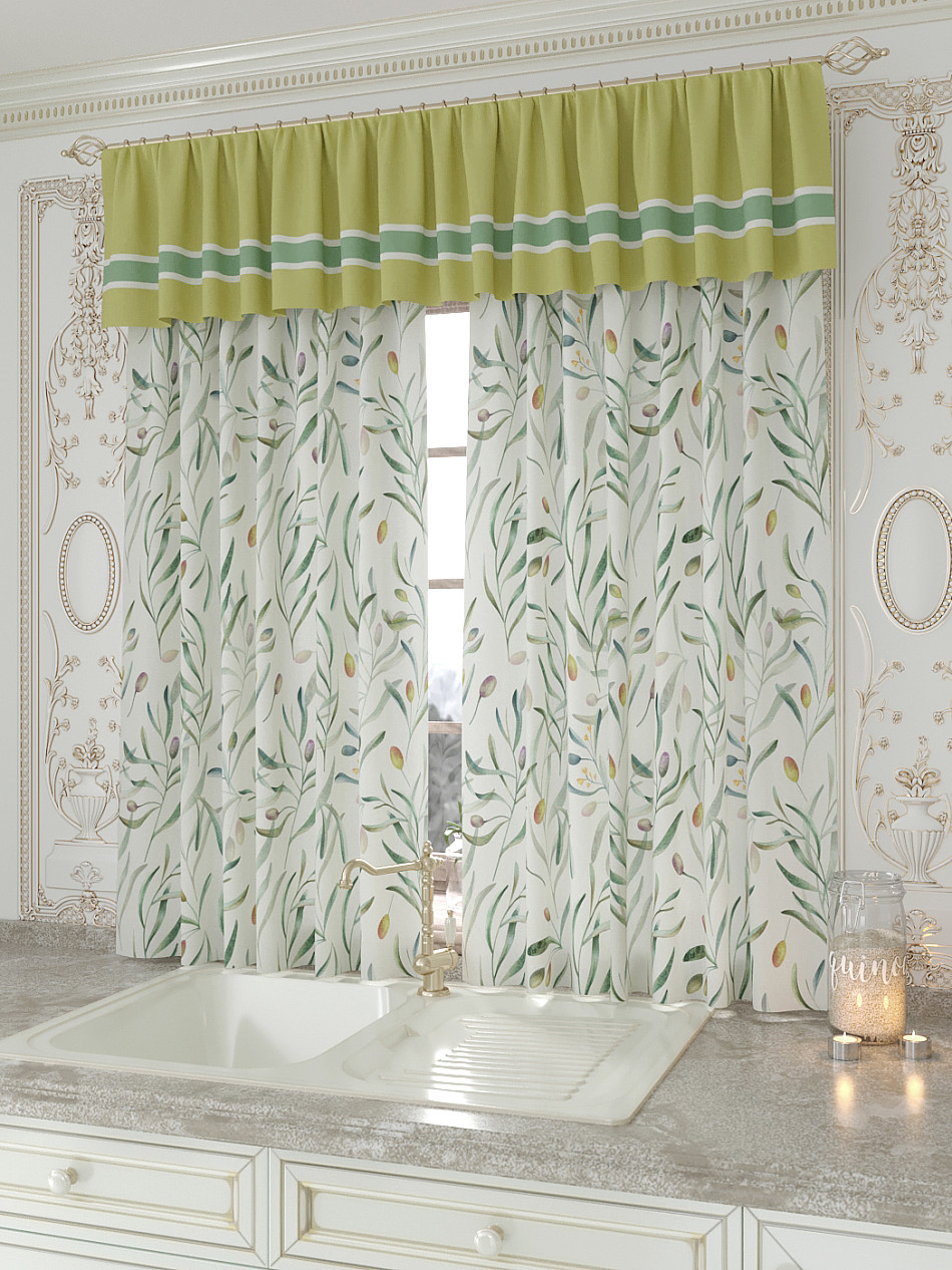 Портьеры 150х160 см. — 2 шт., Ламбрекен 300х40 см. — 1 шт. Комплект штор из легкой портьерной ткани (габардин) оформлен печатным рисунком. Печатный рисунок дает широкие возможности обновить интерьер фактически не требуя ремонта за счет огромного выбора. Ткани с печатным рисунком безопасны и не содержат токсичных веществ. Не смотря на то, что материал легкий, он имеет высокую плотность, мало загрязнятся и не требует особого ухода даже после стирки, что важно для кухонных занавесок. Шторы не выцветают, не растягиваются, превосходно драпируются, образуя струящиеся складки. Прекрасное решение для создания красоты и уюта с помощью уникальных дизайнов.