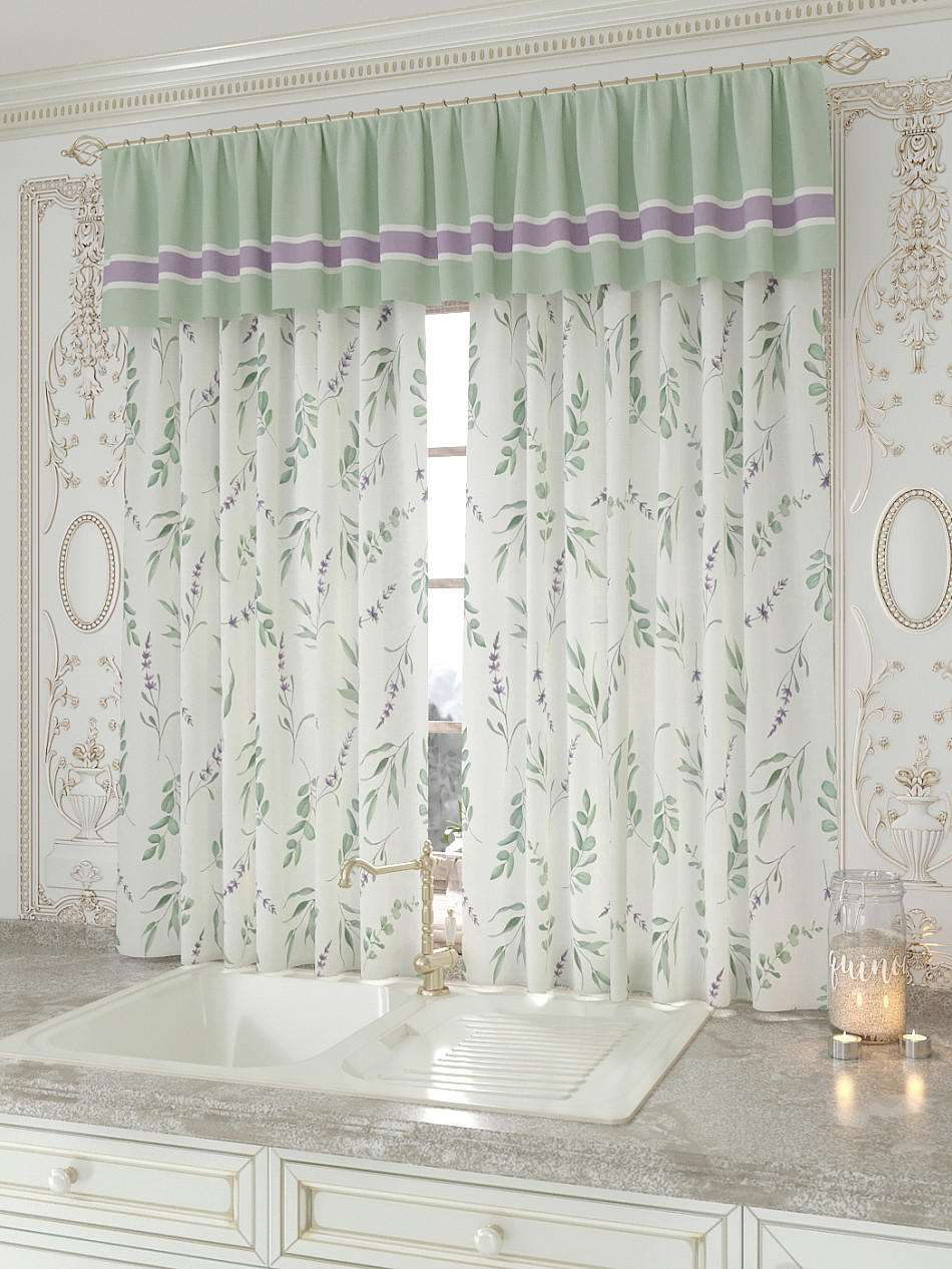 Портьеры 150х160 см. — 2 шт., Ламбрекен 300х40 см. — 1 шт. Комплект штор из легкой портьерной ткани (габардин) оформлен печатным рисунком. Печатный рисунок дает широкие возможности обновить интерьер фактически не требуя ремонта за счет огромного выбора. Ткани с печатным рисунком безопасны и не содержат токсичных веществ. Не смотря на то, что материал легкий, он имеет высокую плотность, мало загрязнятся и не требует особого ухода даже после стирки, что важно для кухонных занавесок. Шторы не выцветают, не растягиваются, превосходно драпируются, образуя струящиеся складки. Прекрасное решение для создания красоты и уюта с помощью уникальных дизайнов.