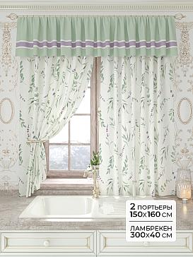- Состав комплекта Портьеры 150х160 см. — 2 шт., Ламбрекен 300х40 см. — 1 шт.