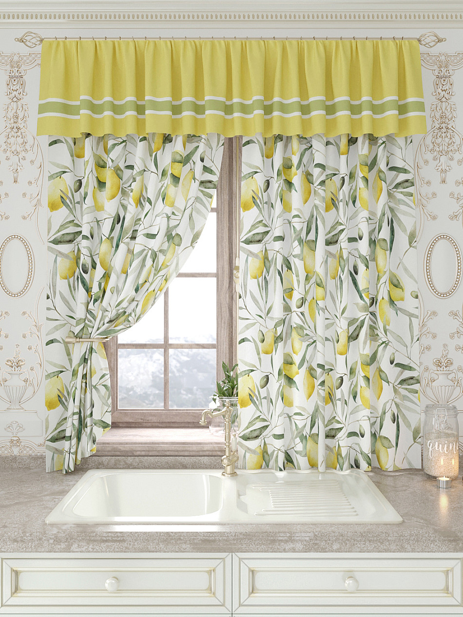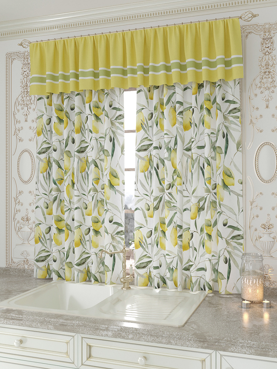 Портьеры 150х160 см. — 2 шт., Ламбрекен 300х40 см. — 1 шт. Комплект штор из легкой портьерной ткани (габардин) оформлен печатным рисунком. Печатный рисунок дает широкие возможности обновить интерьер фактически не требуя ремонта за счет огромного выбора. Ткани с печатным рисунком безопасны и не содержат токсичных веществ. Не смотря на то, что материал легкий, он имеет высокую плотность, мало загрязнятся и не требует особого ухода даже после стирки, что важно для кухонных занавесок. Шторы не выцветают, не растягиваются, превосходно драпируются, образуя струящиеся складки. Прекрасное решение для создания красоты и уюта с помощью уникальных дизайнов.