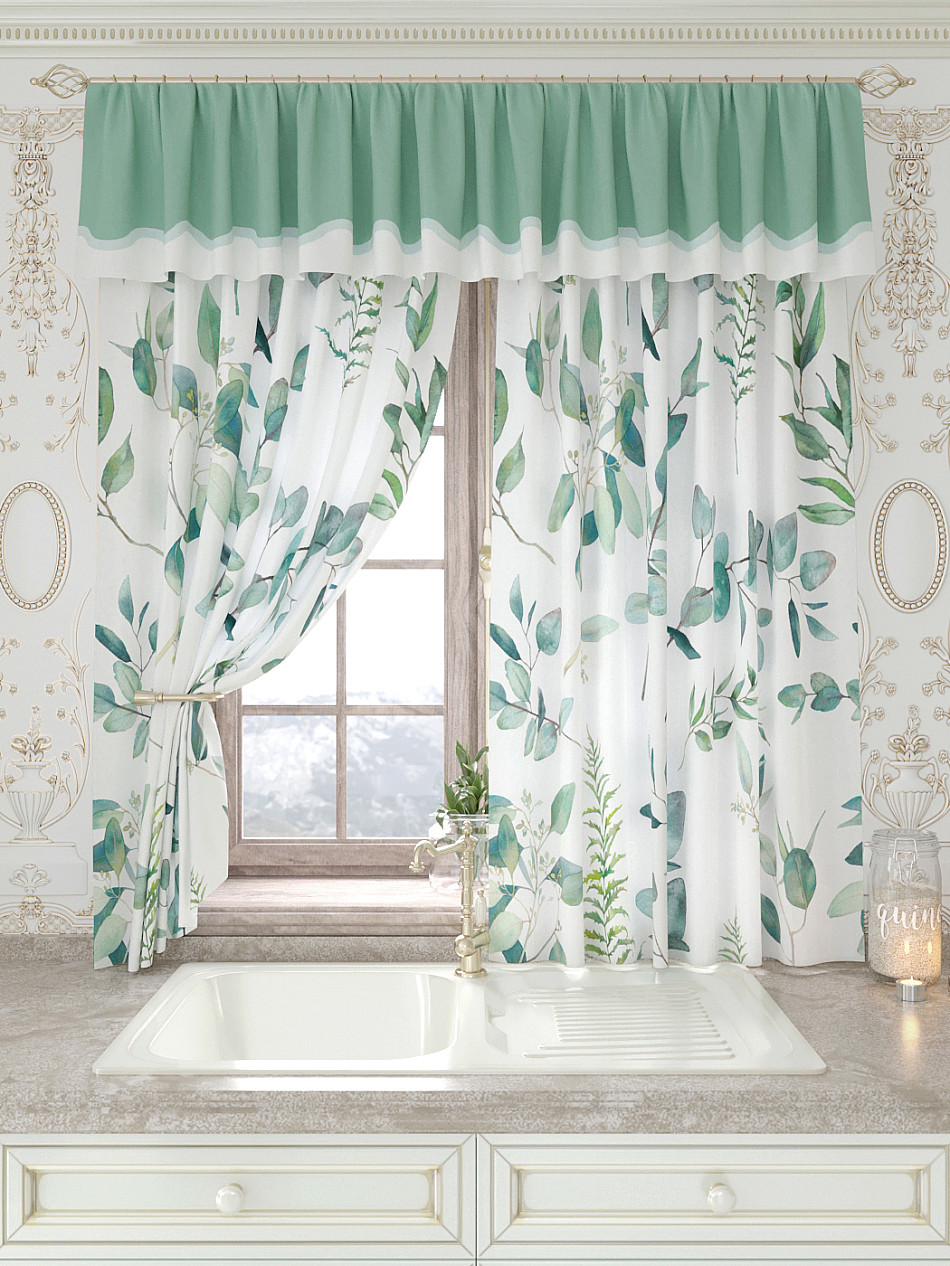 Портьеры 150х160 см. — 2 шт., Ламбрекен 300х40 см. — 1 шт. Комплект штор из легкой портьерной ткани (габардин) оформлен печатным рисунком. Печатный рисунок дает широкие возможности обновить интерьер фактически не требуя ремонта за счет огромного выбора. Ткани с печатным рисунком безопасны и не содержат токсичных веществ. Не смотря на то, что материал легкий, он имеет высокую плотность, мало загрязнятся и не требует особого ухода даже после стирки, что важно для кухонных занавесок. Шторы не выцветают, не растягиваются, превосходно драпируются, образуя струящиеся складки. Прекрасное решение для создания красоты и уюта с помощью уникальных дизайнов.