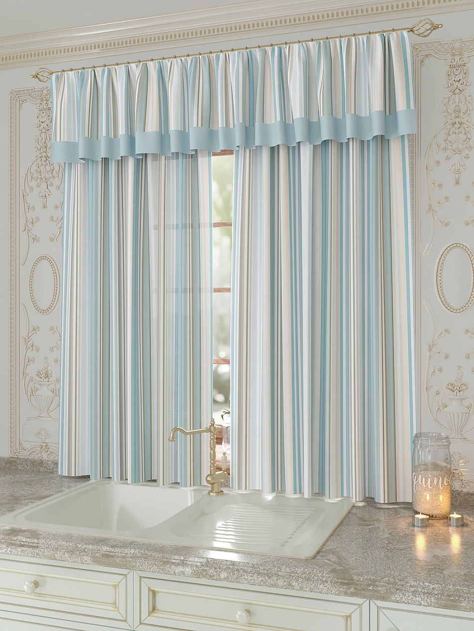 Портьеры 150х160 см. — 2 шт., Ламбрекен 300х40 см. — 1 шт. Комплект штор из легкой портьерной ткани (габардин) оформлен печатным рисунком. Печатный рисунок дает широкие возможности обновить интерьер фактически не требуя ремонта за счет огромного выбора. Ткани с печатным рисунком безопасны и не содержат токсичных веществ. Не смотря на то, что материал легкий, он имеет высокую плотность, мало загрязнятся и не требует особого ухода даже после стирки, что важно для кухонных занавесок. Шторы не выцветают, не растягиваются, превосходно драпируются, образуя струящиеся складки. Прекрасное решение для создания красоты и уюта с помощью уникальных дизайнов.