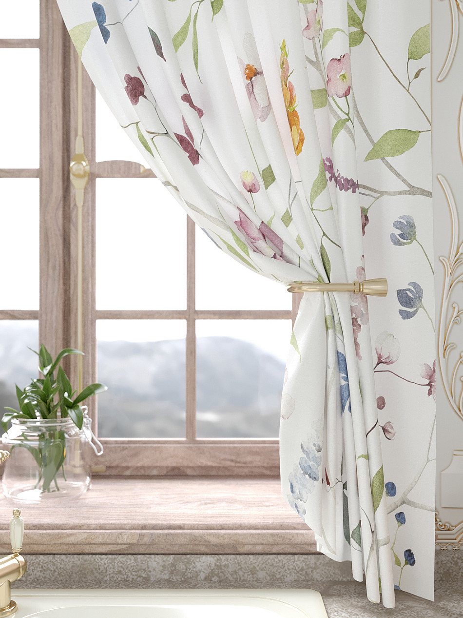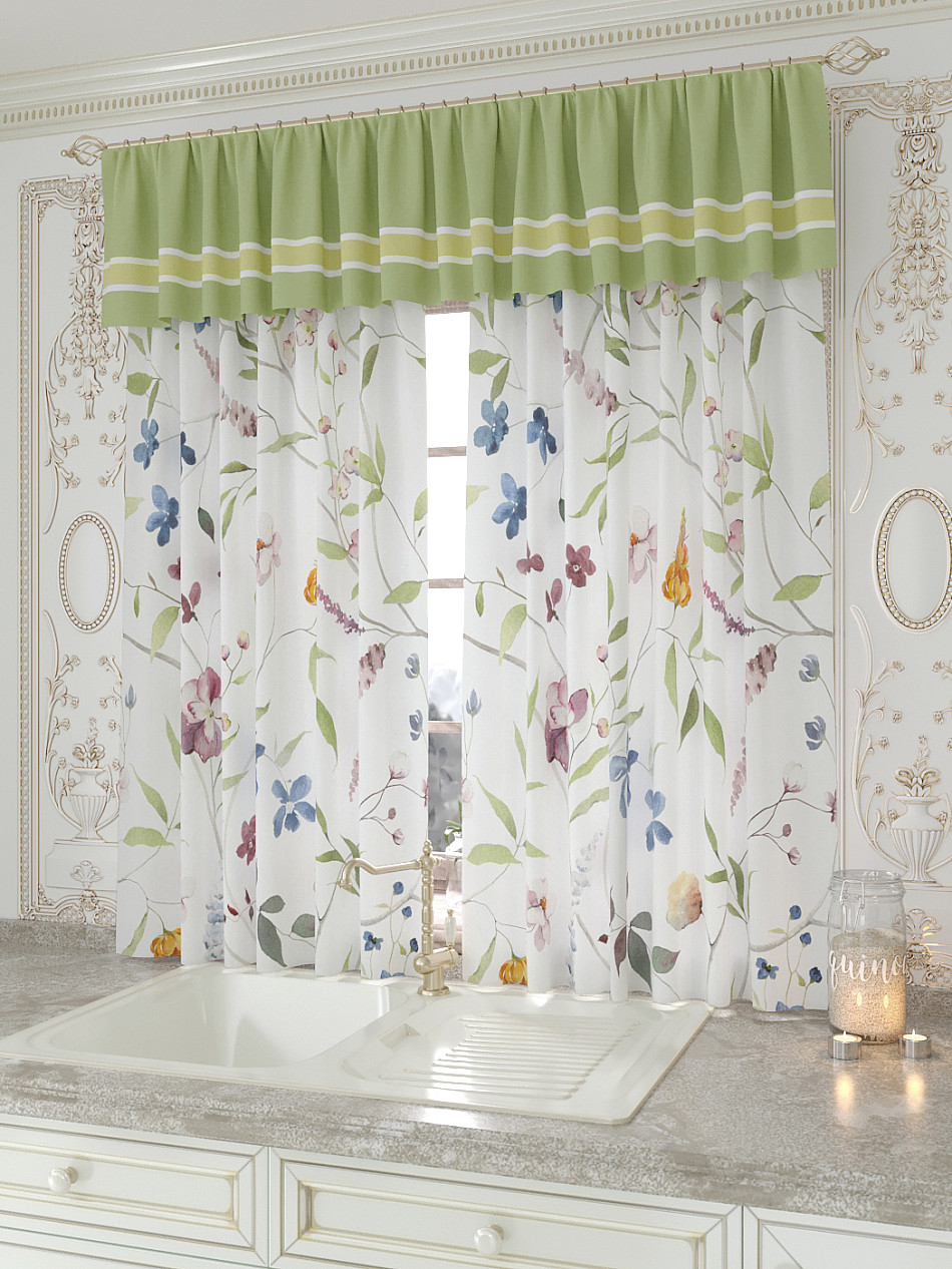 Портьеры 150х160 см. — 2 шт., Ламбрекен 300х40 см. — 1 шт. Комплект штор из легкой портьерной ткани (габардин) оформлен печатным рисунком. Печатный рисунок дает широкие возможности обновить интерьер фактически не требуя ремонта за счет огромного выбора. Ткани с печатным рисунком безопасны и не содержат токсичных веществ. Не смотря на то, что материал легкий, он имеет высокую плотность, мало загрязнятся и не требует особого ухода даже после стирки, что важно для кухонных занавесок. Шторы не выцветают, не растягиваются, превосходно драпируются, образуя струящиеся складки. Прекрасное решение для создания красоты и уюта с помощью уникальных дизайнов.