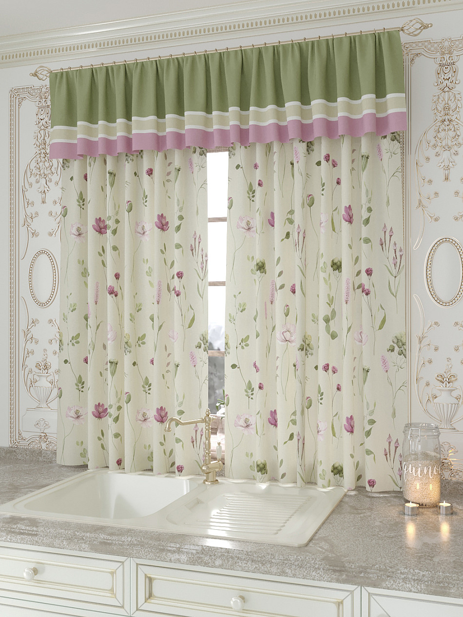Портьеры 150х160 см. — 2 шт., Ламбрекен 300х40 см. — 1 шт. Комплект штор из легкой портьерной ткани (габардин) оформлен печатным рисунком. Печатный рисунок дает широкие возможности обновить интерьер фактически не требуя ремонта за счет огромного выбора. Ткани с печатным рисунком безопасны и не содержат токсичных веществ. Не смотря на то, что материал легкий, он имеет высокую плотность, мало загрязнятся и не требует особого ухода даже после стирки, что важно для кухонных занавесок. Шторы не выцветают, не растягиваются, превосходно драпируются, образуя струящиеся складки. Прекрасное решение для создания красоты и уюта с помощью уникальных дизайнов.