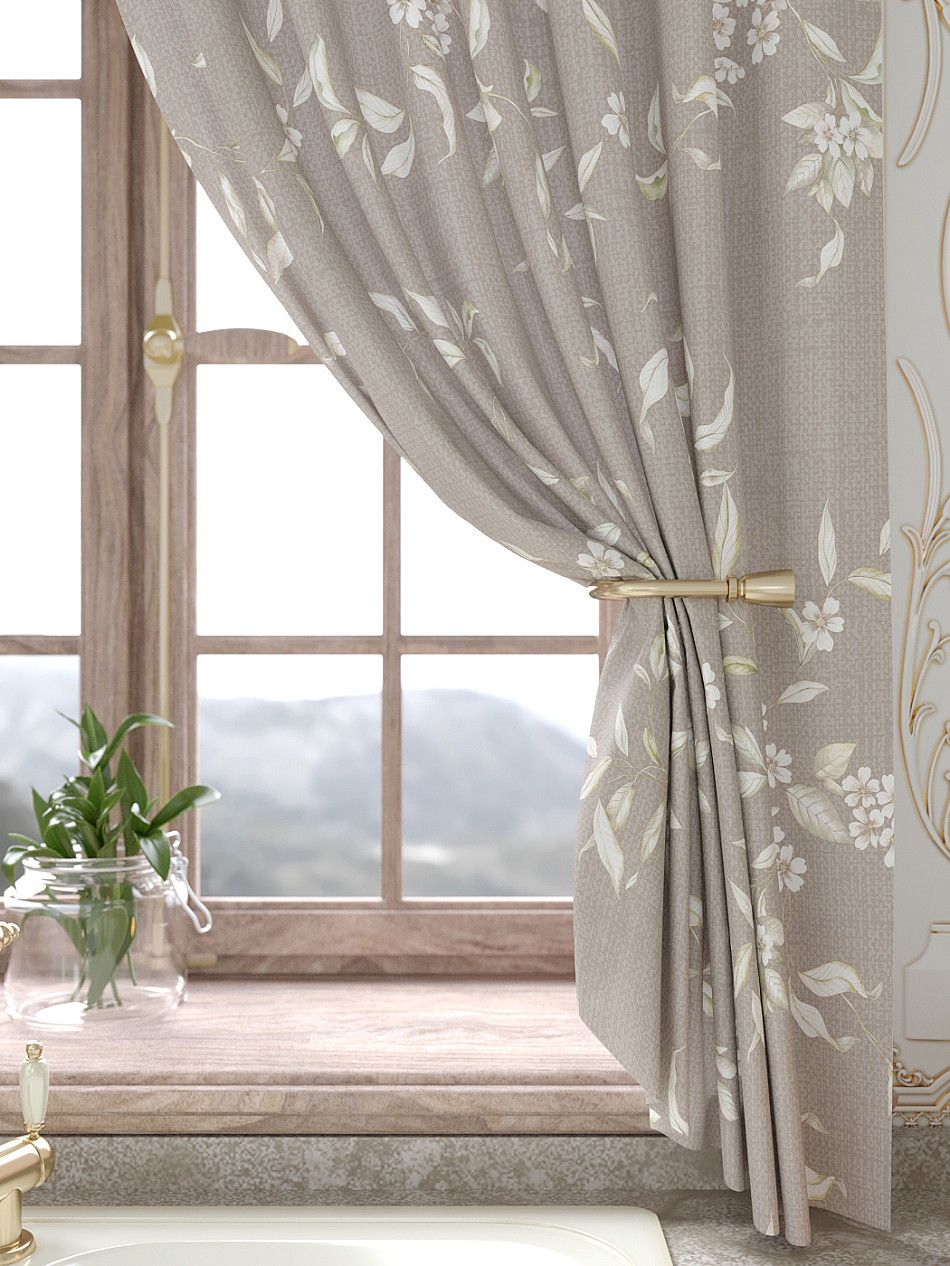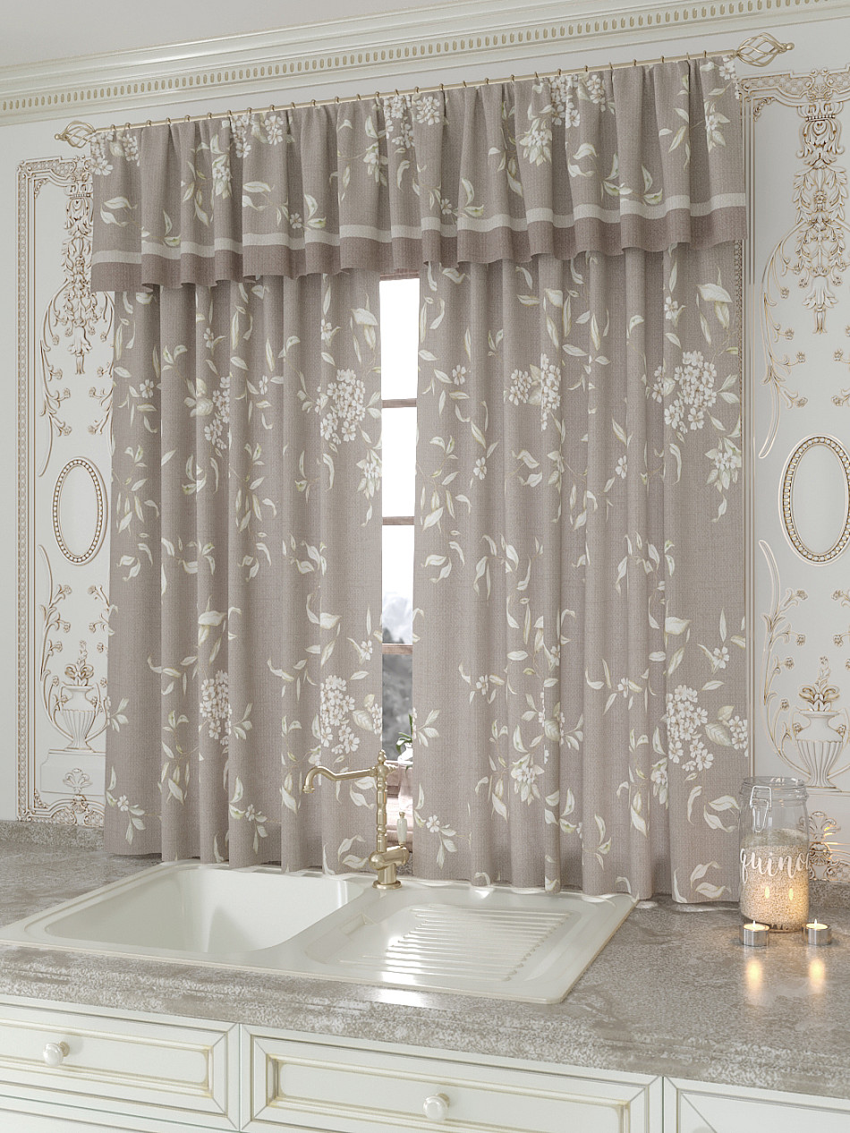 Портьеры 150х160 см. — 2 шт., Ламбрекен 300х40 см. — 1 шт. Комплект штор из легкой портьерной ткани (габардин) оформлен печатным рисунком. Печатный рисунок дает широкие возможности обновить интерьер фактически не требуя ремонта за счет огромного выбора. Ткани с печатным рисунком безопасны и не содержат токсичных веществ. Не смотря на то, что материал легкий, он имеет высокую плотность, мало загрязнятся и не требует особого ухода даже после стирки, что важно для кухонных занавесок. Шторы не выцветают, не растягиваются, превосходно драпируются, образуя струящиеся складки. Прекрасное решение для создания красоты и уюта с помощью уникальных дизайнов.