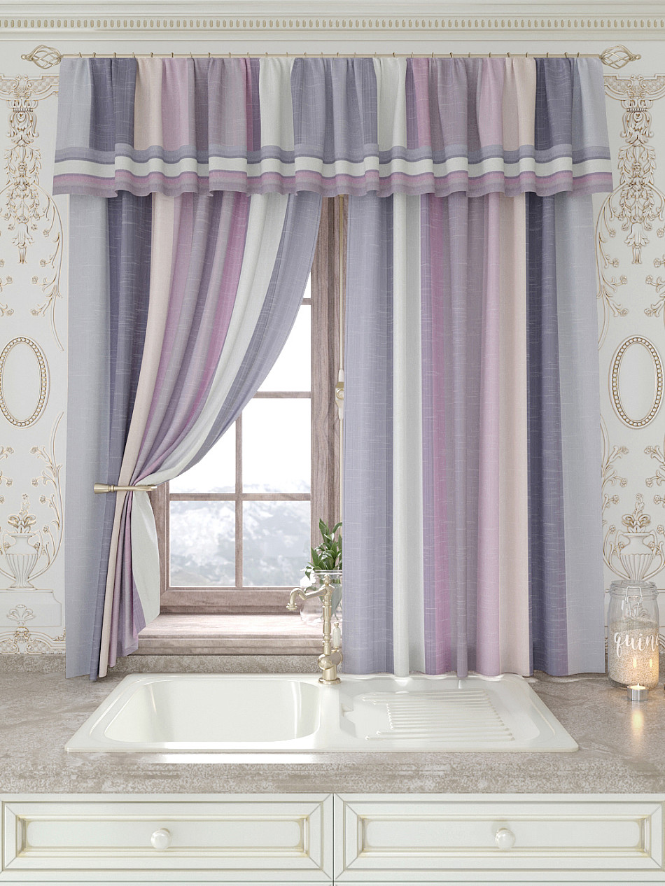 Портьеры 150х160 см. — 2 шт., Ламбрекен 300х40 см. — 1 шт. Комплект штор из легкой портьерной ткани (габардин) оформлен печатным рисунком. Печатный рисунок дает широкие возможности обновить интерьер фактически не требуя ремонта за счет огромного выбора. Ткани с печатным рисунком безопасны и не содержат токсичных веществ. Не смотря на то, что материал легкий, он имеет высокую плотность, мало загрязнятся и не требует особого ухода даже после стирки, что важно для кухонных занавесок. Шторы не выцветают, не растягиваются, превосходно драпируются, образуя струящиеся складки. Прекрасное решение для создания красоты и уюта с помощью уникальных дизайнов.