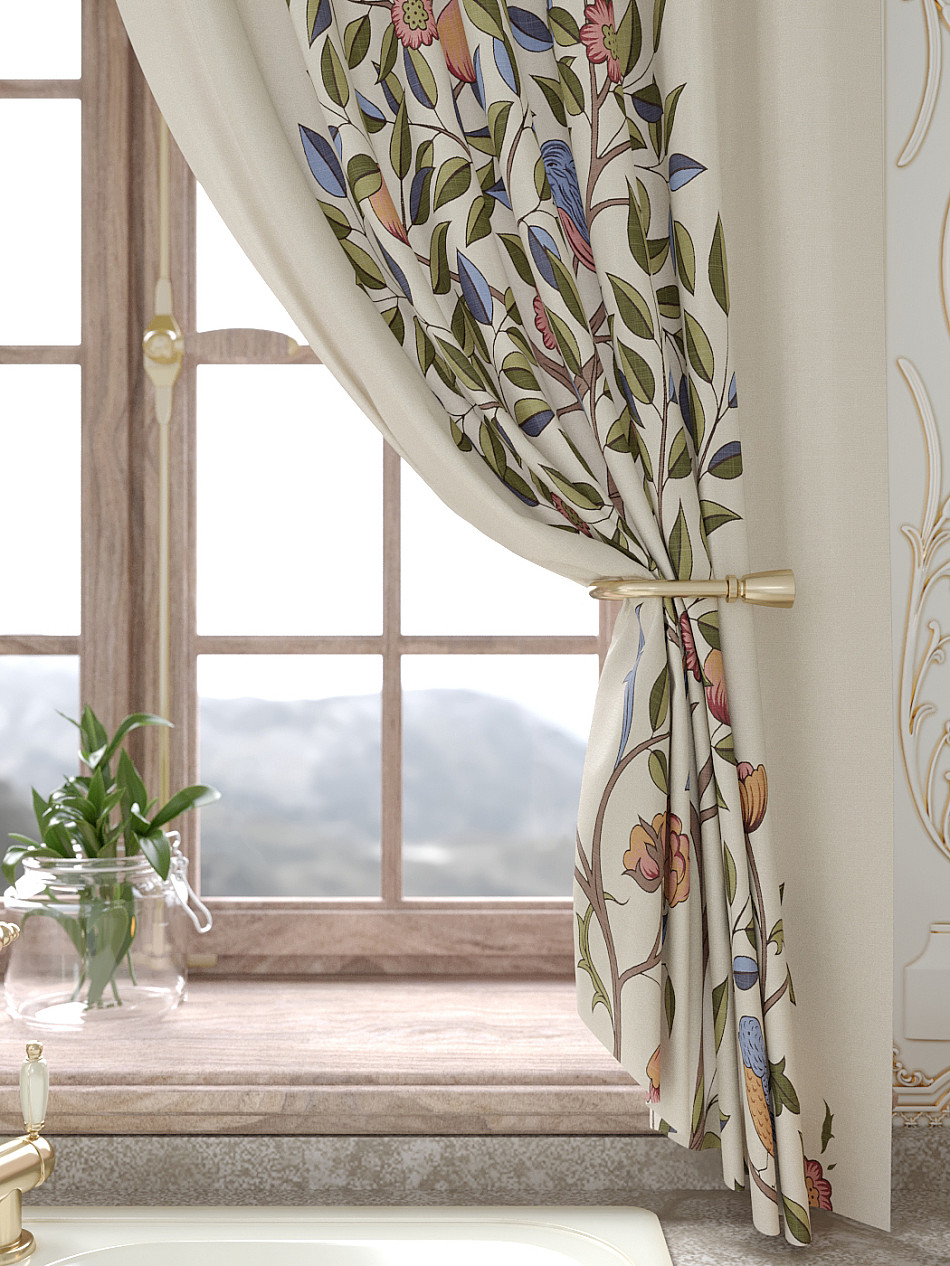 Портьеры 150х160 см. — 2 шт., Ламбрекен 300х40 см. — 1 шт. Комплект штор из легкой портьерной ткани (габардин) оформлен печатным рисунком. Печатный рисунок дает широкие возможности обновить интерьер фактически не требуя ремонта за счет огромного выбора. Ткани с печатным рисунком безопасны и не содержат токсичных веществ. Не смотря на то, что материал легкий, он имеет высокую плотность, мало загрязнятся и не требует особого ухода даже после стирки, что важно для кухонных занавесок. Шторы не выцветают, не растягиваются, превосходно драпируются, образуя струящиеся складки. Прекрасное решение для создания красоты и уюта с помощью уникальных дизайнов.
