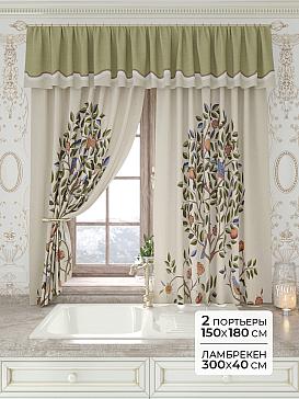 - Состав комплекта Портьеры 150х160 см. — 2 шт., Ламбрекен 300х40 см. — 1 шт.
