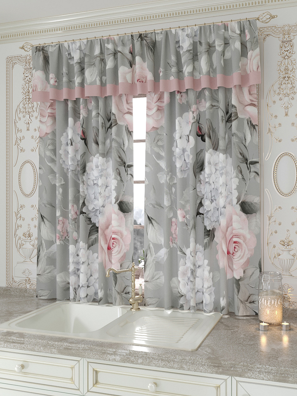 Портьеры 150х160 см. — 2 шт., Ламбрекен 300х40 см. — 1 шт. Комплект штор из легкой портьерной ткани (габардин) оформлен печатным рисунком. Печатный рисунок дает широкие возможности обновить интерьер фактически не требуя ремонта за счет огромного выбора. Ткани с печатным рисунком безопасны и не содержат токсичных веществ. Не смотря на то, что материал легкий, он имеет высокую плотность, мало загрязнятся и не требует особого ухода даже после стирки, что важно для кухонных занавесок. Шторы не выцветают, не растягиваются, превосходно драпируются, образуя струящиеся складки. Прекрасное решение для создания красоты и уюта с помощью уникальных дизайнов.