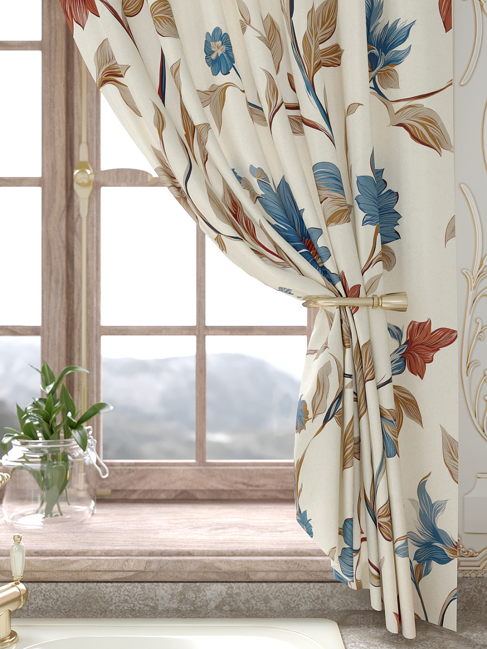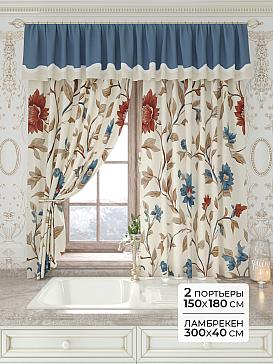Портьеры 150х160 см. — 2 шт., Ламбрекен 300х40 см. — 1 шт. Комплект штор из легкой портьерной ткани (габардин) оформлен печатным рисунком. Печатный рисунок дает широкие возможности обновить интерьер фактически не требуя ремонта за счет огромного выбора. Ткани с печатным рисунком безопасны и не содержат токсичных веществ. Не смотря на то, что материал легкий, он имеет высокую плотность, мало загрязнятся и не требует особого ухода даже после стирки, что важно для кухонных занавесок. Шторы не выцветают, не растягиваются, превосходно драпируются, образуя струящиеся складки. Прекрасное решение для создания красоты и уюта с помощью уникальных дизайнов.
