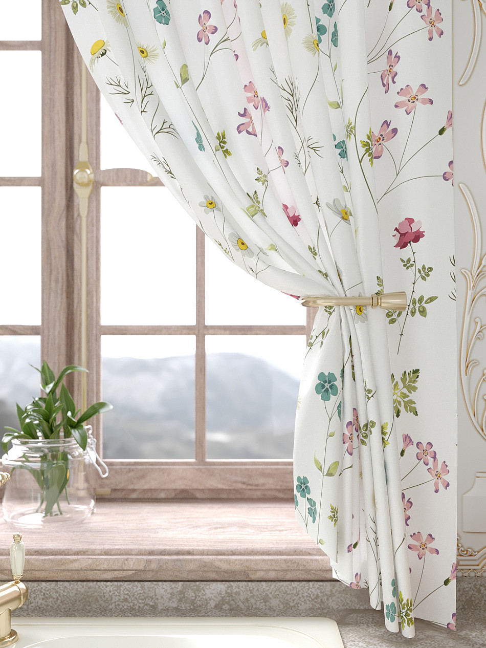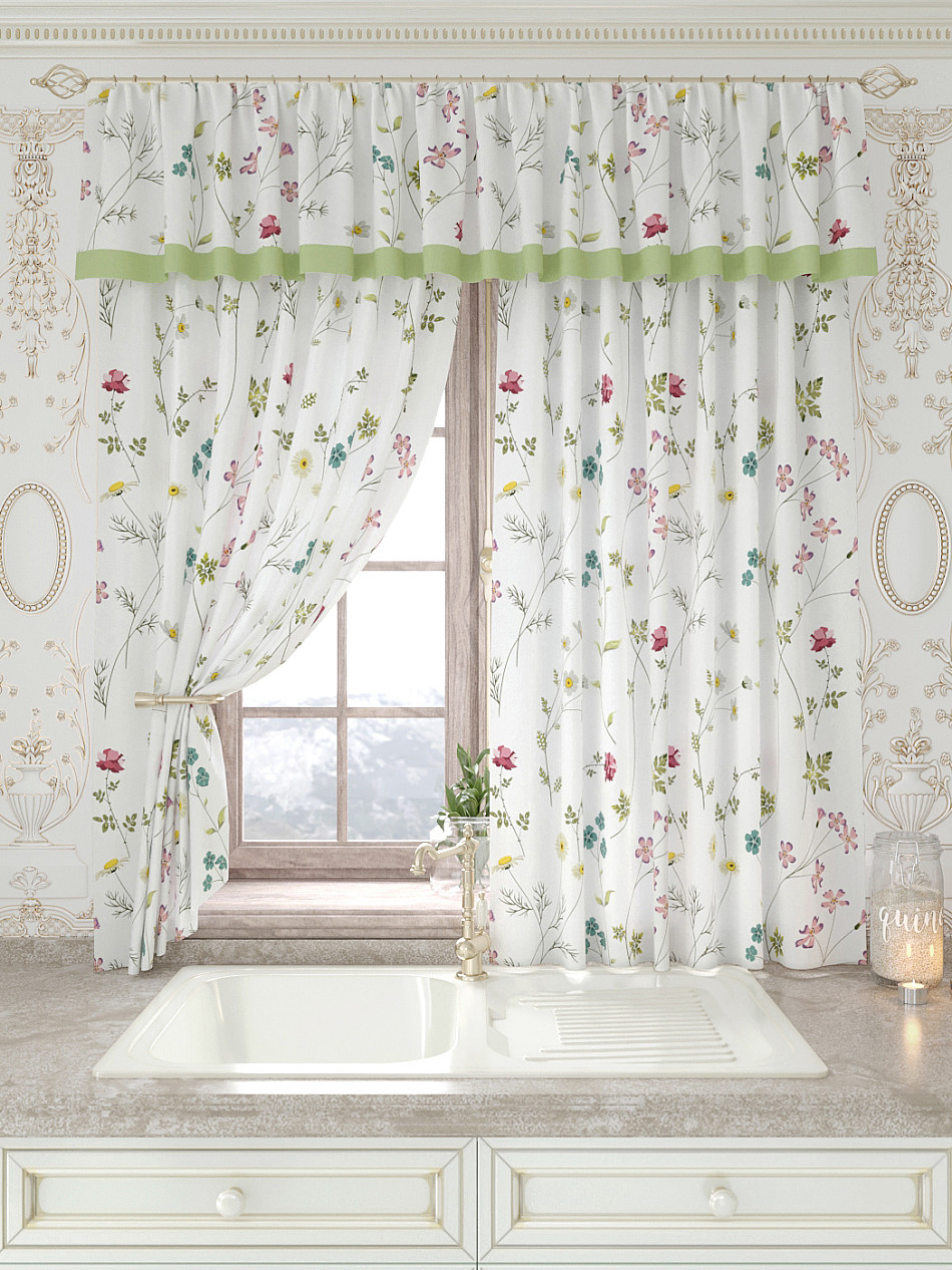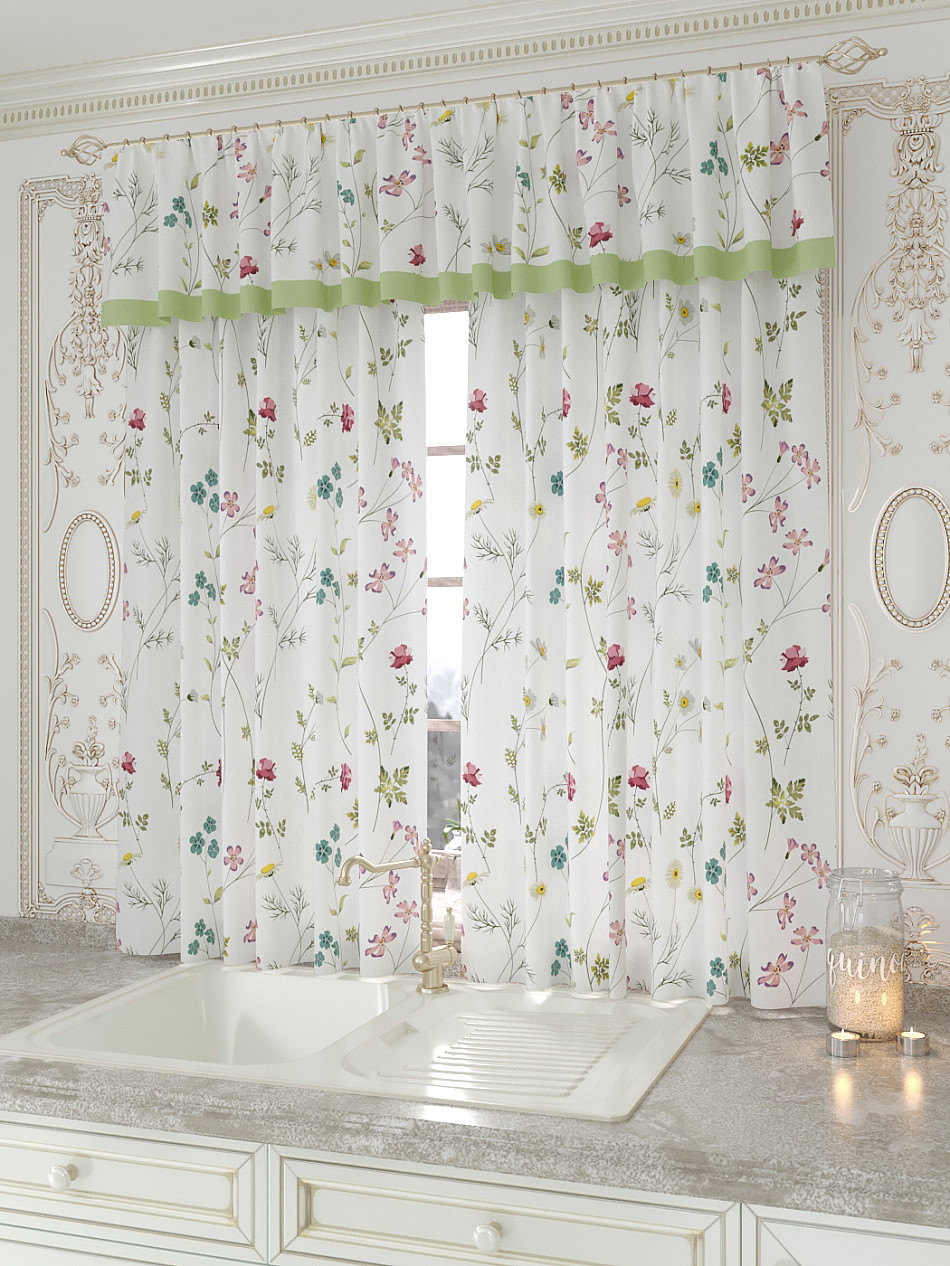 Портьеры 150х160 см. — 2 шт., Ламбрекен 300х40 см. — 1 шт. Комплект штор из легкой портьерной ткани (габардин) оформлен печатным рисунком. Печатный рисунок дает широкие возможности обновить интерьер фактически не требуя ремонта за счет огромного выбора. Ткани с печатным рисунком безопасны и не содержат токсичных веществ. Не смотря на то, что материал легкий, он имеет высокую плотность, мало загрязнятся и не требует особого ухода даже после стирки, что важно для кухонных занавесок. Шторы не выцветают, не растягиваются, превосходно драпируются, образуя струящиеся складки. Прекрасное решение для создания красоты и уюта с помощью уникальных дизайнов.