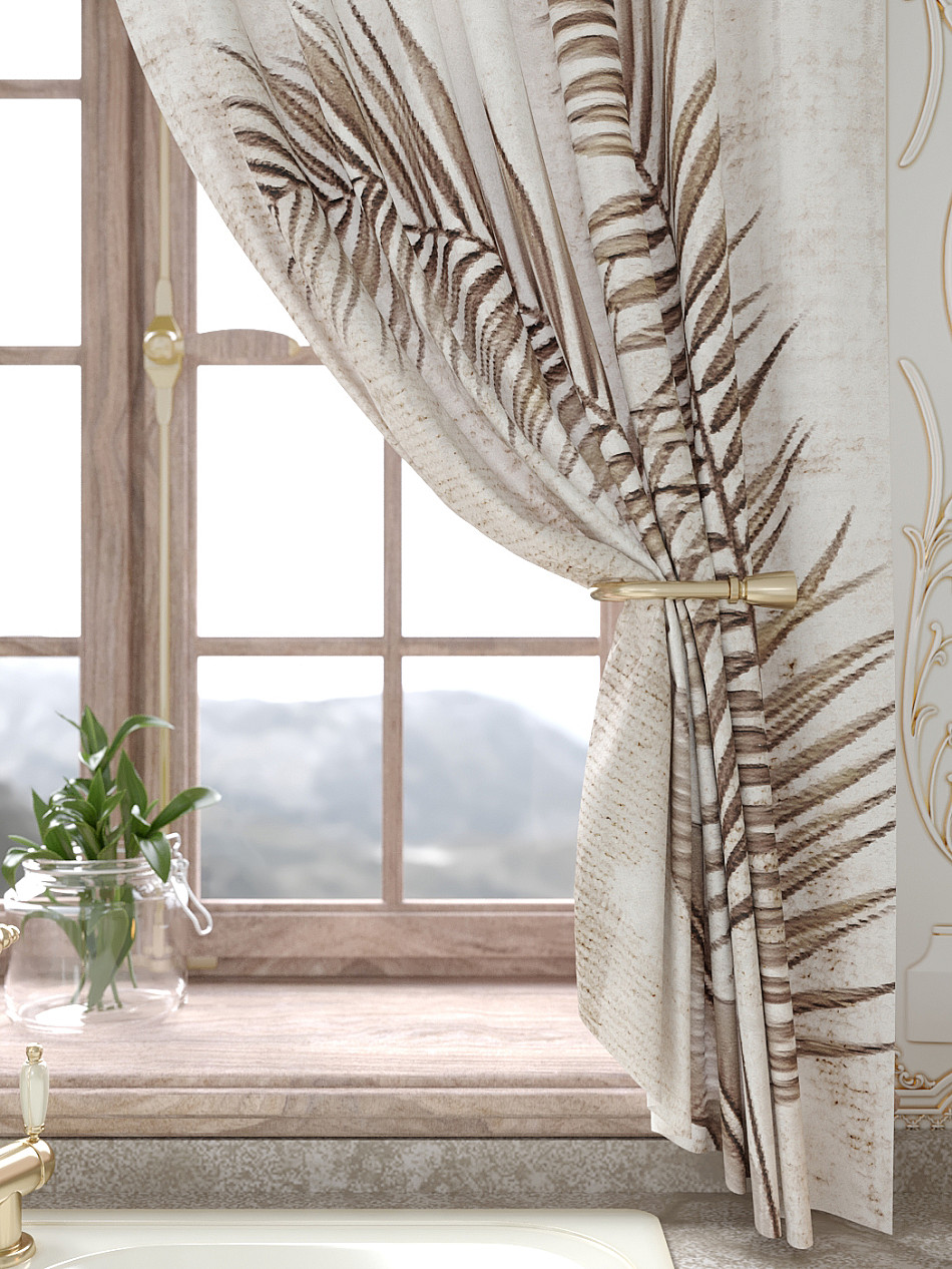 Портьеры 150х160 см. — 2 шт., Ламбрекен 300х40 см. — 1 шт. Комплект штор из легкой портьерной ткани (габардин) оформлен печатным рисунком. Печатный рисунок дает широкие возможности обновить интерьер фактически не требуя ремонта за счет огромного выбора. Ткани с печатным рисунком безопасны и не содержат токсичных веществ. Не смотря на то, что материал легкий, он имеет высокую плотность, мало загрязнятся и не требует особого ухода даже после стирки, что важно для кухонных занавесок. Шторы не выцветают, не растягиваются, превосходно драпируются, образуя струящиеся складки. Прекрасное решение для создания красоты и уюта с помощью уникальных дизайнов.