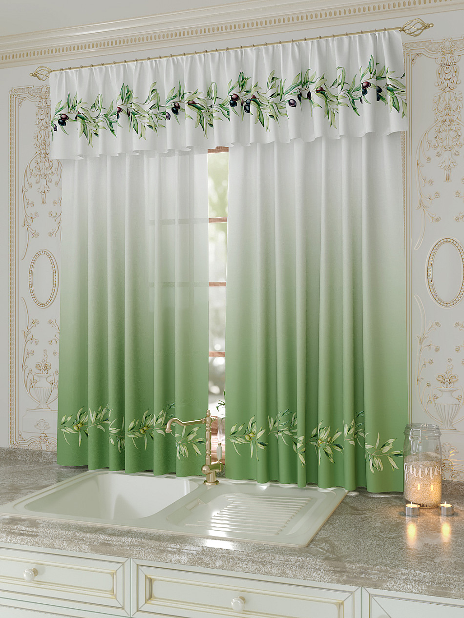 Портьеры 150х160 см. — 2 шт., Ламбрекен 300х40 см. — 1 шт. Комплект штор из легкой портьерной ткани (габардин) оформлен печатным рисунком. Печатный рисунок дает широкие возможности обновить интерьер фактически не требуя ремонта за счет огромного выбора. Ткани с печатным рисунком безопасны и не содержат токсичных веществ. Не смотря на то, что материал легкий, он имеет высокую плотность, мало загрязнятся и не требует особого ухода даже после стирки, что важно для кухонных занавесок. Шторы не выцветают, не растягиваются, превосходно драпируются, образуя струящиеся складки. Прекрасное решение для создания красоты и уюта с помощью уникальных дизайнов.