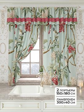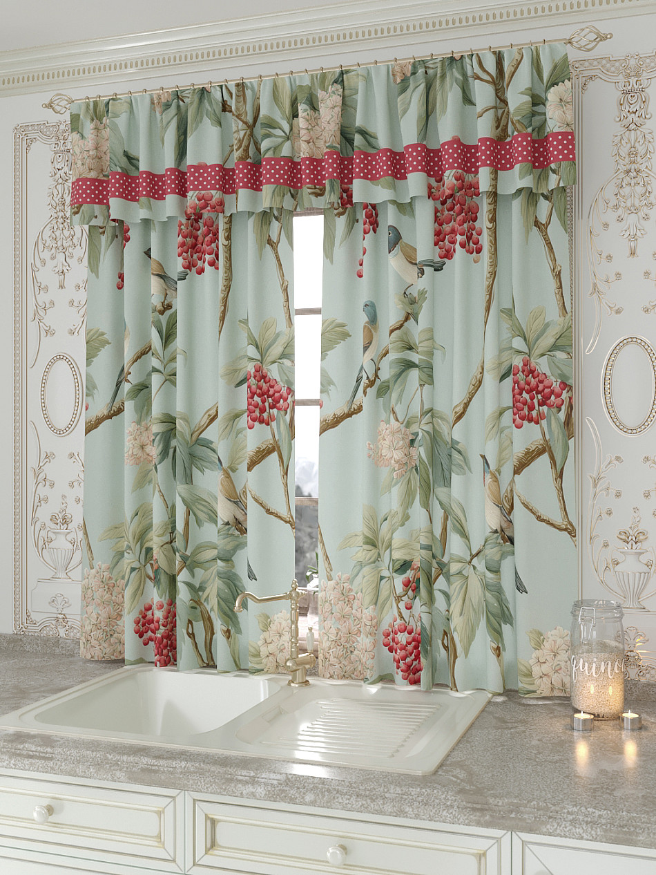 Портьеры 150х160 см. — 2 шт., Ламбрекен 300х40 см. — 1 шт. Комплект штор из легкой портьерной ткани (габардин) оформлен печатным рисунком. Печатный рисунок дает широкие возможности обновить интерьер фактически не требуя ремонта за счет огромного выбора. Ткани с печатным рисунком безопасны и не содержат токсичных веществ. Не смотря на то, что материал легкий, он имеет высокую плотность, мало загрязнятся и не требует особого ухода даже после стирки, что важно для кухонных занавесок. Шторы не выцветают, не растягиваются, превосходно драпируются, образуя струящиеся складки. Прекрасное решение для создания красоты и уюта с помощью уникальных дизайнов.