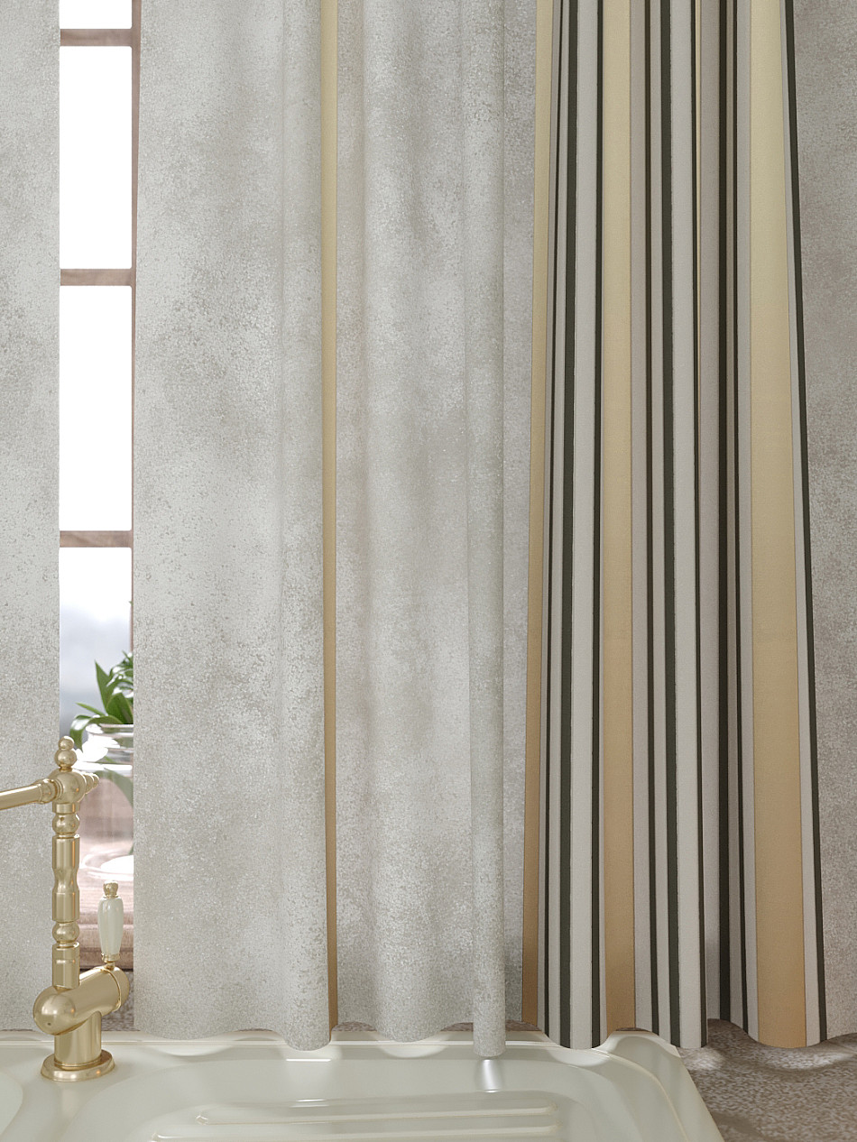 Габардин представляет собой целую группу тканей, которые отличаются содержанием и сочетанием различных волокон – хлопка, шелка, шерсти или синтетики. В зависимости от состава материала, шторы из габардина могут быть разными по плотности и внешнему виду, но всегда отличаются характерным декоративным рубчиком на поверхности. Габардин – идеальная ткань для пошива штор, поскольку она отлично дышит, не мнется, легкая и мягкая на ощупь, но при этом прочная и хорошо защищает от солнечных лучей.