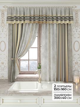 - Состав комплекта Портьеры 150х160 см. — 2 шт., Ламбрекен 300х40 см. — 1 шт.