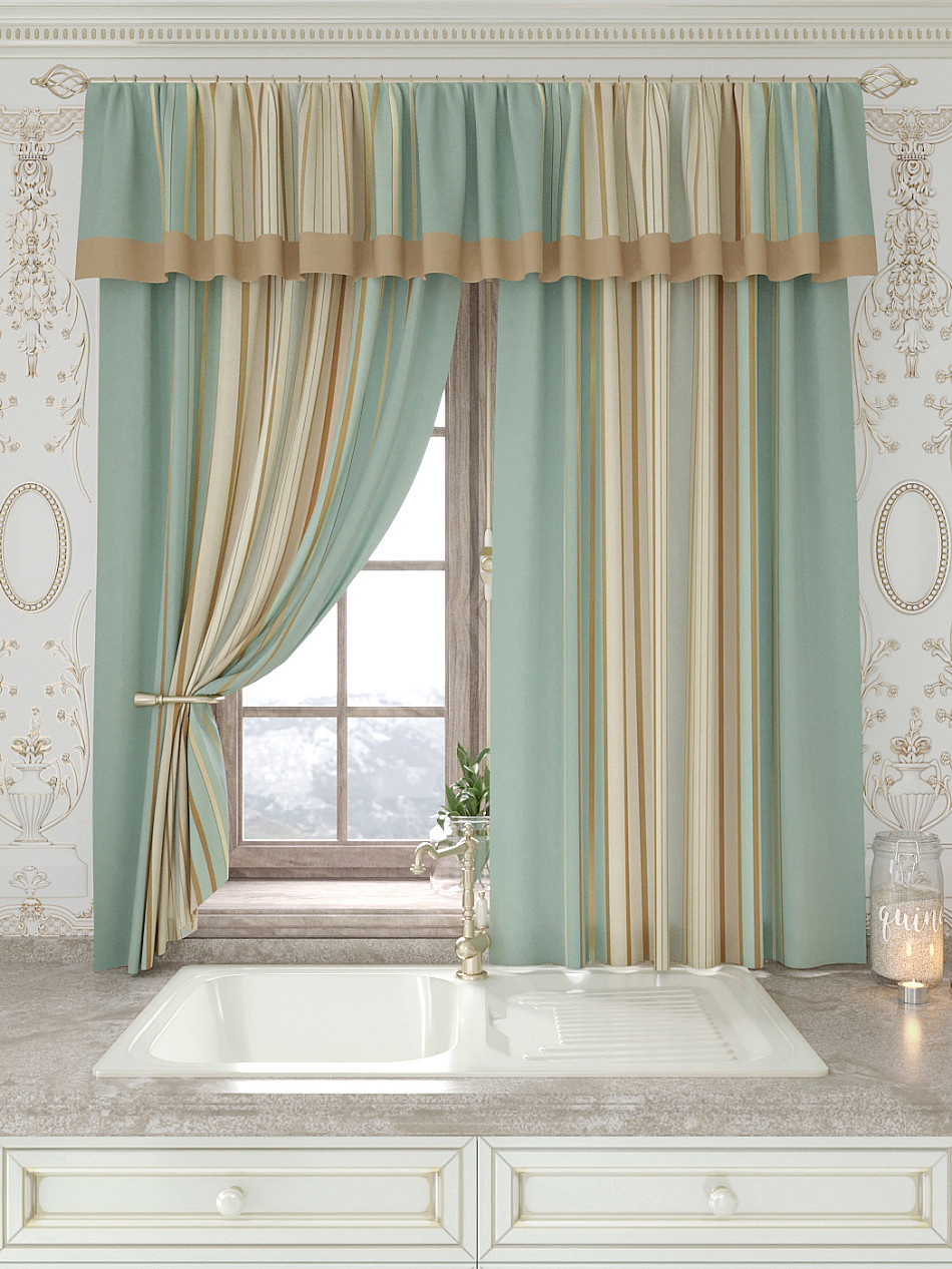 Портьеры 150х160 см. — 2 шт., Ламбрекен 300х40 см. — 1 шт. Комплект штор из легкой портьерной ткани (габардин) оформлен печатным рисунком. Печатный рисунок дает широкие возможности обновить интерьер фактически не требуя ремонта за счет огромного выбора. Ткани с печатным рисунком безопасны и не содержат токсичных веществ. Не смотря на то, что материал легкий, он имеет высокую плотность, мало загрязнятся и не требует особого ухода даже после стирки, что важно для кухонных занавесок. Шторы не выцветают, не растягиваются, превосходно драпируются, образуя струящиеся складки. Прекрасное решение для создания красоты и уюта с помощью уникальных дизайнов.