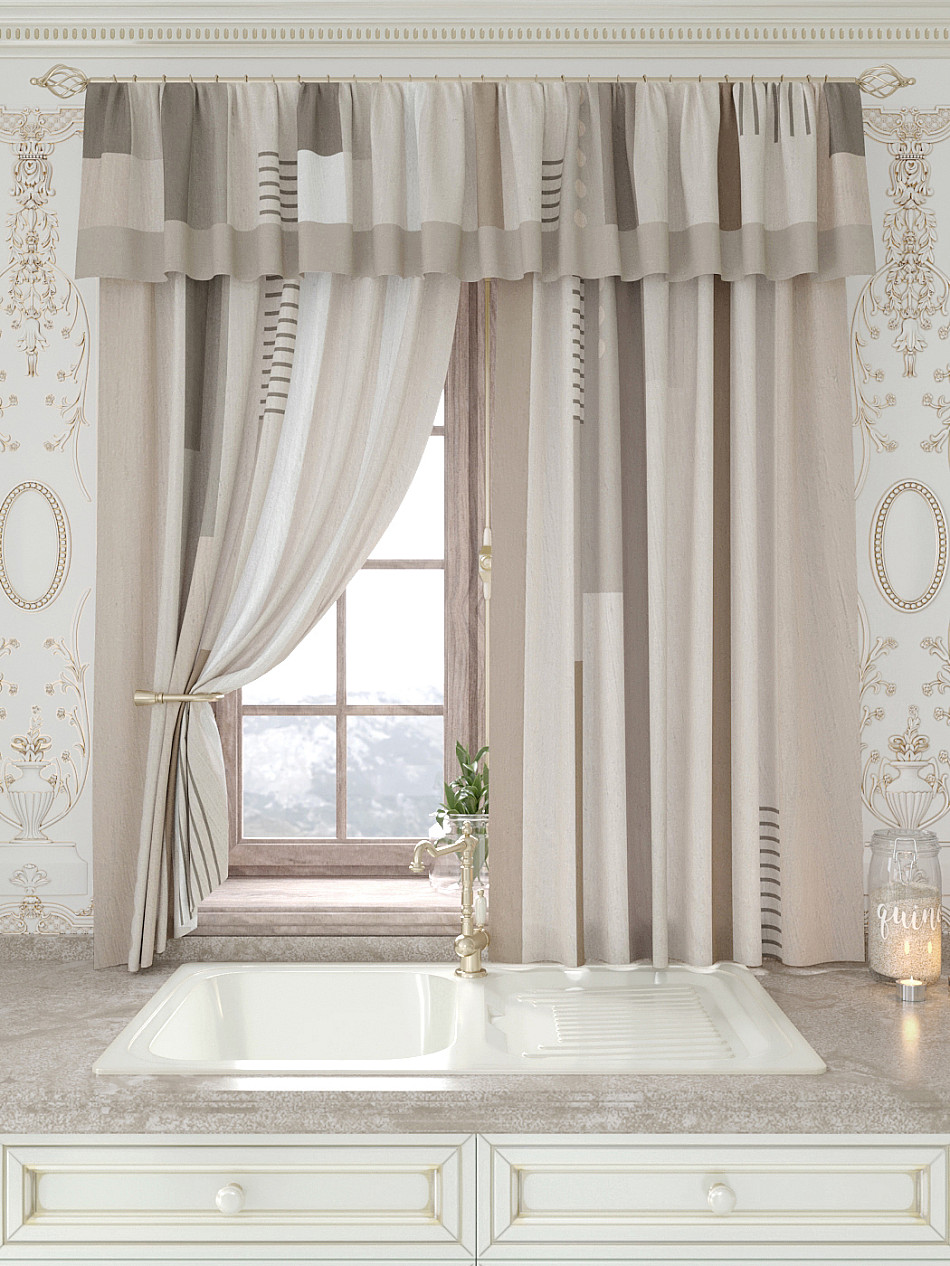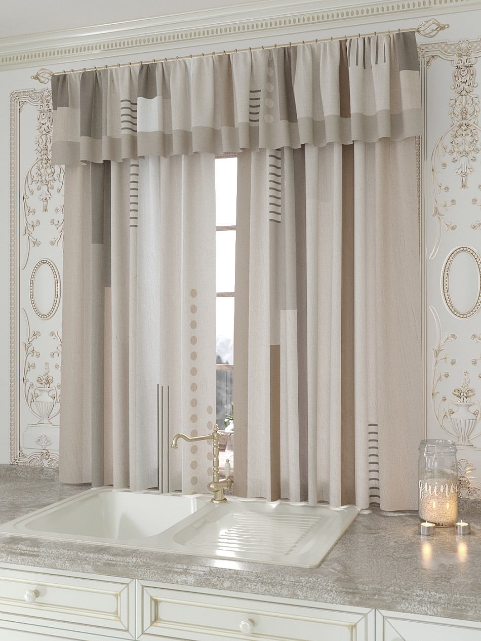 Портьеры 150х160 см. — 2 шт., Ламбрекен 300х40 см. — 1 шт. Комплект штор из легкой портьерной ткани (габардин) оформлен печатным рисунком. Печатный рисунок дает широкие возможности обновить интерьер фактически не требуя ремонта за счет огромного выбора. Ткани с печатным рисунком безопасны и не содержат токсичных веществ. Не смотря на то, что материал легкий, он имеет высокую плотность, мало загрязнятся и не требует особого ухода даже после стирки, что важно для кухонных занавесок. Шторы не выцветают, не растягиваются, превосходно драпируются, образуя струящиеся складки. Прекрасное решение для создания красоты и уюта с помощью уникальных дизайнов.