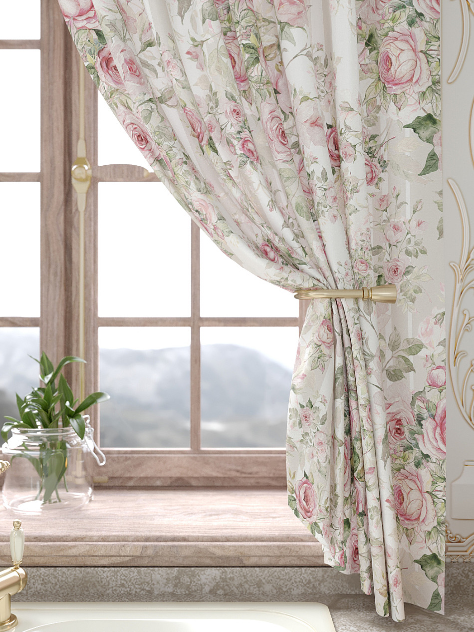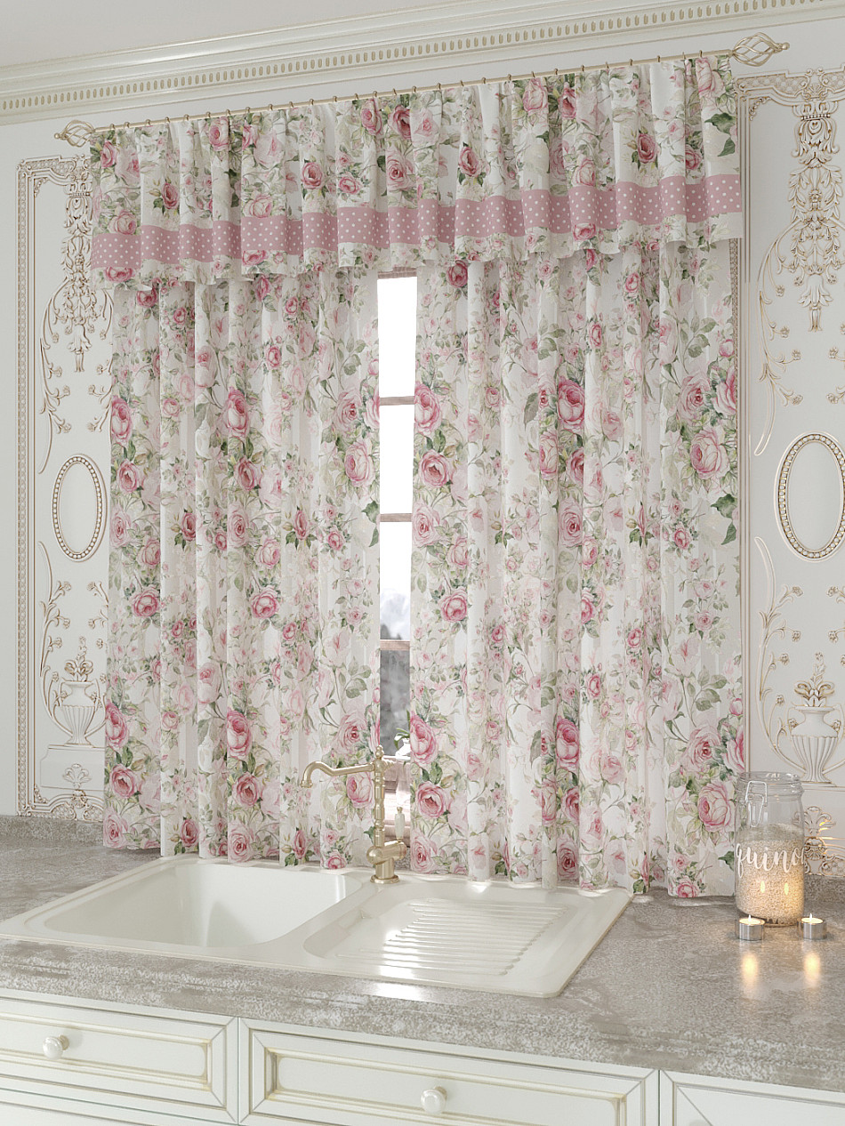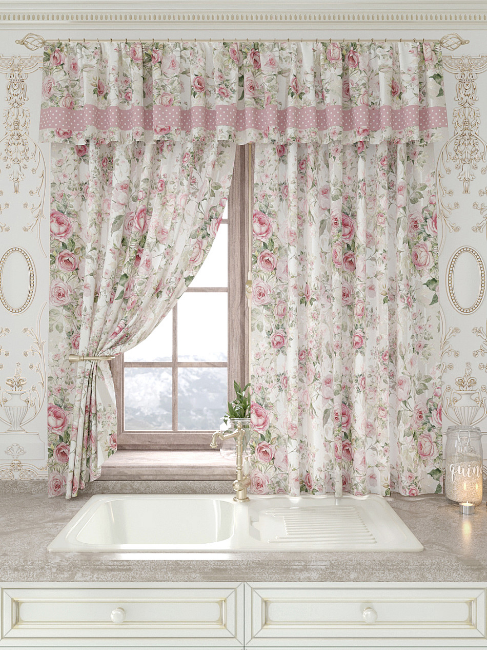 Кухонный Прованс Растения С розами ЦветочныйАксессуары для оформления штор: