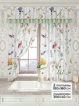 Портьеры 150х160 см. — 2 шт., Ламбрекен 300х40 см. — 1 шт. Комплект штор из легкой портьерной ткани (габардин) оформлен печатным рисунком. Печатный рисунок дает широкие возможности обновить интерьер фактически не требуя ремонта за счет огромного выбора. Ткани с печатным рисунком безопасны и не содержат токсичных веществ. Не смотря на то, что материал легкий, он имеет высокую плотность, мало загрязнятся и не требует особого ухода даже после стирки, что важно для кухонных занавесок. Шторы не выцветают, не растягиваются, превосходно драпируются, образуя струящиеся складки. Прекрасное решение для создания красоты и уюта с помощью уникальных дизайнов.