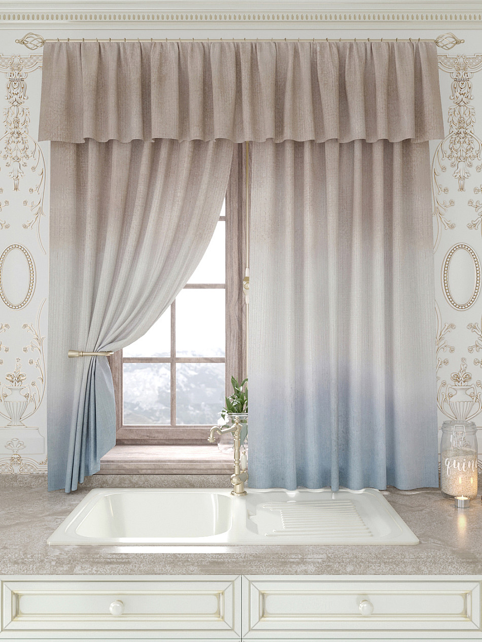 Портьеры 150х160 см. — 2 шт., Ламбрекен 300х40 см. — 1 шт. Комплект штор из легкой портьерной ткани (габардин) оформлен печатным рисунком. Печатный рисунок дает широкие возможности обновить интерьер фактически не требуя ремонта за счет огромного выбора. Ткани с печатным рисунком безопасны и не содержат токсичных веществ. Не смотря на то, что материал легкий, он имеет высокую плотность, мало загрязнятся и не требует особого ухода даже после стирки, что важно для кухонных занавесок. Шторы не выцветают, не растягиваются, превосходно драпируются, образуя струящиеся складки. Прекрасное решение для создания красоты и уюта с помощью уникальных дизайнов.