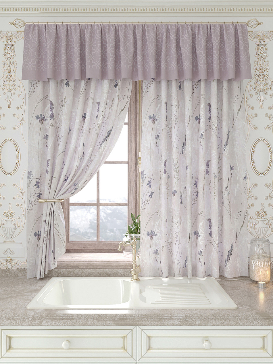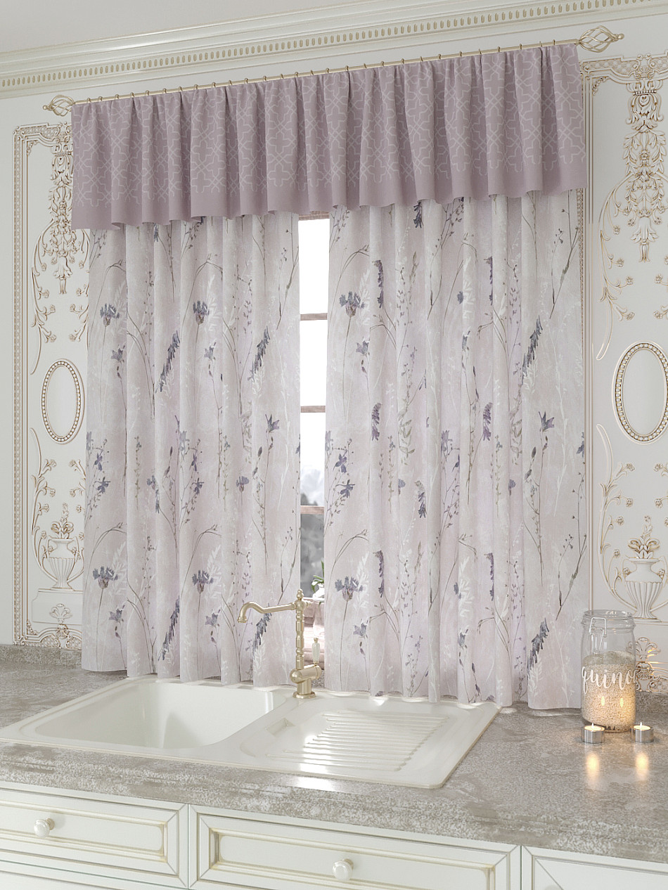 Портьеры 150х160 см. — 2 шт., Ламбрекен 300х40 см. — 1 шт. Комплект штор из легкой портьерной ткани (габардин) оформлен печатным рисунком. Печатный рисунок дает широкие возможности обновить интерьер фактически не требуя ремонта за счет огромного выбора. Ткани с печатным рисунком безопасны и не содержат токсичных веществ. Не смотря на то, что материал легкий, он имеет высокую плотность, мало загрязнятся и не требует особого ухода даже после стирки, что важно для кухонных занавесок. Шторы не выцветают, не растягиваются, превосходно драпируются, образуя струящиеся складки. Прекрасное решение для создания красоты и уюта с помощью уникальных дизайнов.
