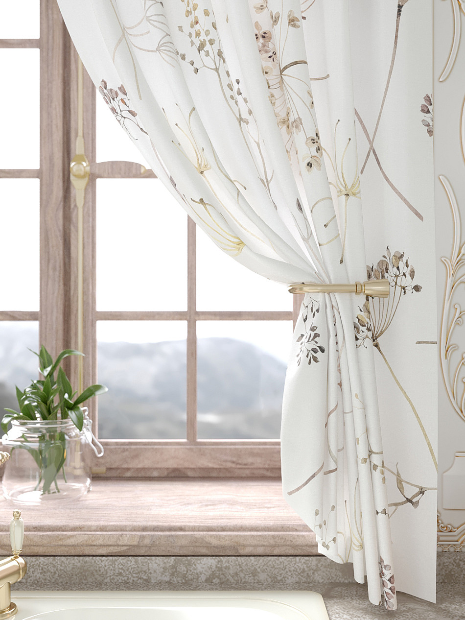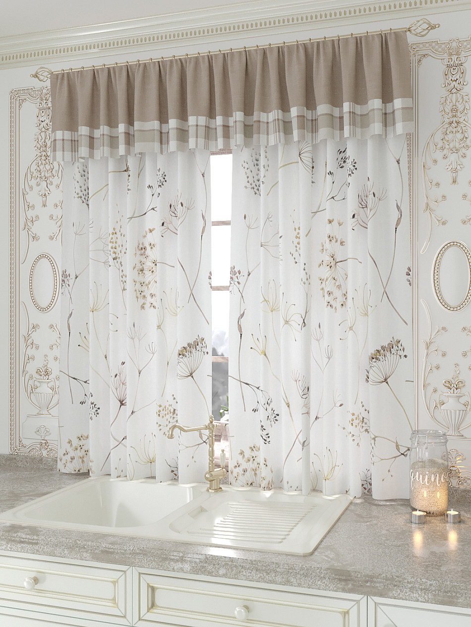 Портьеры 150х160 см. — 2 шт., Ламбрекен 300х40 см. — 1 шт. Комплект штор из легкой портьерной ткани (габардин) оформлен печатным рисунком. Печатный рисунок дает широкие возможности обновить интерьер фактически не требуя ремонта за счет огромного выбора. Ткани с печатным рисунком безопасны и не содержат токсичных веществ. Не смотря на то, что материал легкий, он имеет высокую плотность, мало загрязнятся и не требует особого ухода даже после стирки, что важно для кухонных занавесок. Шторы не выцветают, не растягиваются, превосходно драпируются, образуя струящиеся складки. Прекрасное решение для создания красоты и уюта с помощью уникальных дизайнов.