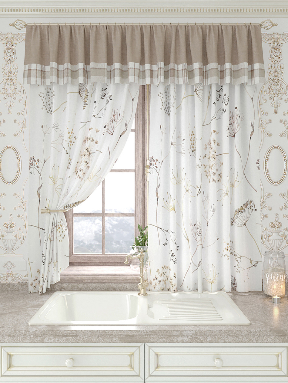 Портьеры 150х160 см. — 2 шт., Ламбрекен 300х40 см. — 1 шт. Комплект штор из легкой портьерной ткани (габардин) оформлен печатным рисунком. Печатный рисунок дает широкие возможности обновить интерьер фактически не требуя ремонта за счет огромного выбора. Ткани с печатным рисунком безопасны и не содержат токсичных веществ. Не смотря на то, что материал легкий, он имеет высокую плотность, мало загрязнятся и не требует особого ухода даже после стирки, что важно для кухонных занавесок. Шторы не выцветают, не растягиваются, превосходно драпируются, образуя струящиеся складки. Прекрасное решение для создания красоты и уюта с помощью уникальных дизайнов.