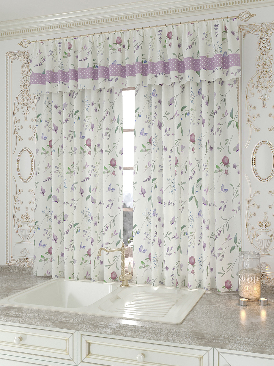 Портьеры 150х160 см. — 2 шт., Ламбрекен 300х40 см. — 1 шт. Комплект штор из легкой портьерной ткани (габардин) оформлен печатным рисунком. Печатный рисунок дает широкие возможности обновить интерьер фактически не требуя ремонта за счет огромного выбора. Ткани с печатным рисунком безопасны и не содержат токсичных веществ. Не смотря на то, что материал легкий, он имеет высокую плотность, мало загрязнятся и не требует особого ухода даже после стирки, что важно для кухонных занавесок. Шторы не выцветают, не растягиваются, превосходно драпируются, образуя струящиеся складки. Прекрасное решение для создания красоты и уюта с помощью уникальных дизайнов.