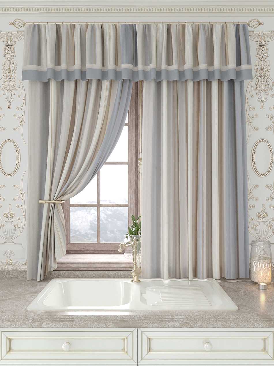 Портьеры 150х160 см. — 2 шт., Ламбрекен 300х40 см. — 1 шт. Комплект штор из легкой портьерной ткани (габардин) оформлен печатным рисунком. Печатный рисунок дает широкие возможности обновить интерьер фактически не требуя ремонта за счет огромного выбора. Ткани с печатным рисунком безопасны и не содержат токсичных веществ. Не смотря на то, что материал легкий, он имеет высокую плотность, мало загрязнятся и не требует особого ухода даже после стирки, что важно для кухонных занавесок. Шторы не выцветают, не растягиваются, превосходно драпируются, образуя струящиеся складки. Прекрасное решение для создания красоты и уюта с помощью уникальных дизайнов.