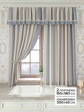 - Состав комплекта Портьеры 150х160 см. — 2 шт., Ламбрекен 300х40 см. — 1 шт.