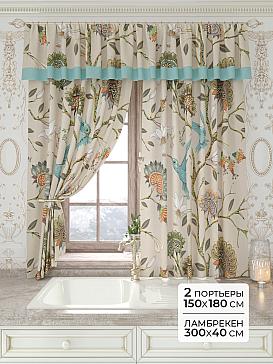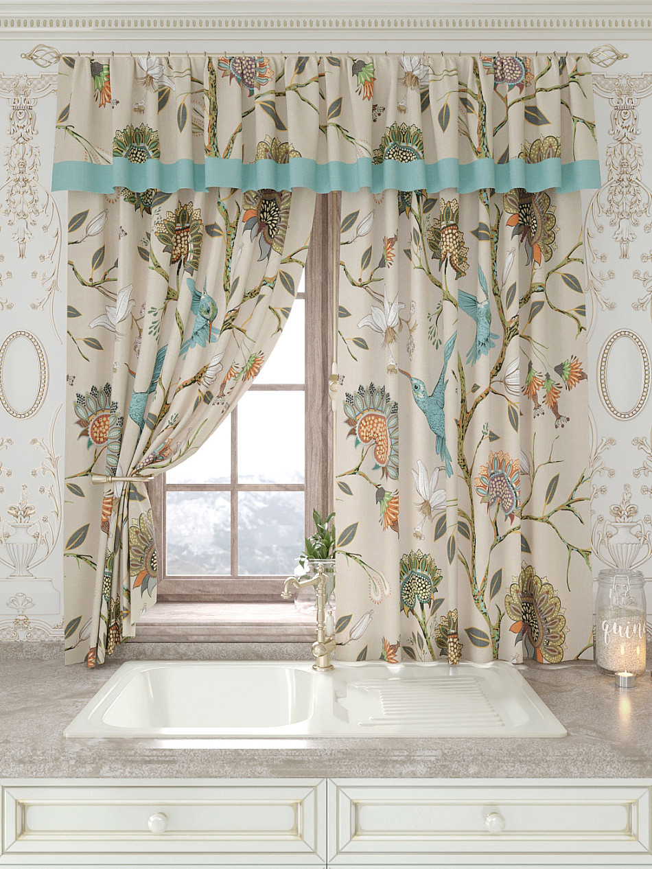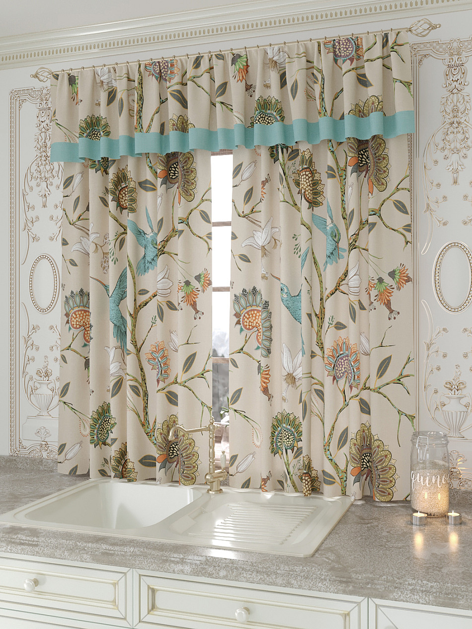 Портьеры 150х160 см. — 2 шт., Ламбрекен 300х40 см. — 1 шт. Комплект штор из легкой портьерной ткани (габардин) оформлен печатным рисунком. Печатный рисунок дает широкие возможности обновить интерьер фактически не требуя ремонта за счет огромного выбора. Ткани с печатным рисунком безопасны и не содержат токсичных веществ. Не смотря на то, что материал легкий, он имеет высокую плотность, мало загрязнятся и не требует особого ухода даже после стирки, что важно для кухонных занавесок. Шторы не выцветают, не растягиваются, превосходно драпируются, образуя струящиеся складки. Прекрасное решение для создания красоты и уюта с помощью уникальных дизайнов.