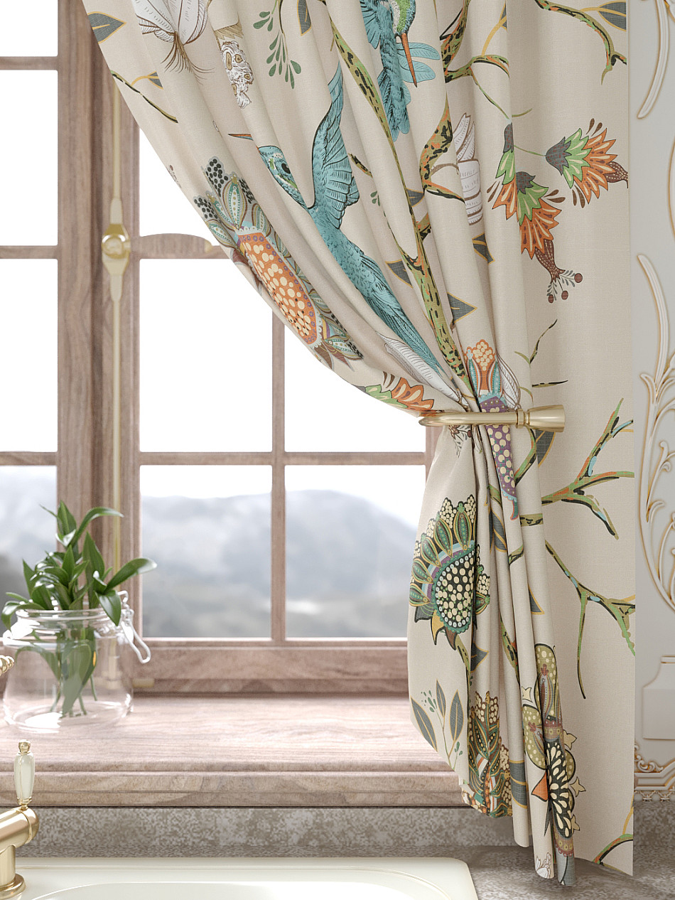 Кухонный Орнамент Птицы Узоры Фото принтАксессуары для оформления штор:
