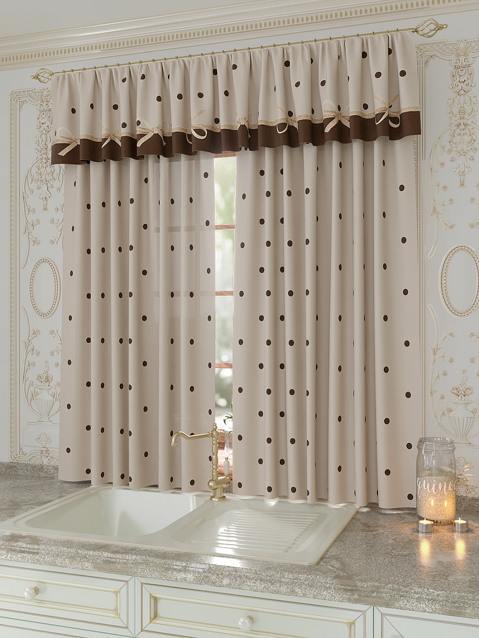 Портьеры 150х160 см. — 2 шт., Ламбрекен 300х40 см. — 1 шт. Комплект штор из легкой портьерной ткани (габардин) оформлен печатным рисунком. Печатный рисунок дает широкие возможности обновить интерьер фактически не требуя ремонта за счет огромного выбора. Ткани с печатным рисунком безопасны и не содержат токсичных веществ. Не смотря на то, что материал легкий, он имеет высокую плотность, мало загрязнятся и не требует особого ухода даже после стирки, что важно для кухонных занавесок. Шторы не выцветают, не растягиваются, превосходно драпируются, образуя струящиеся складки. Прекрасное решение для создания красоты и уюта с помощью уникальных дизайнов.