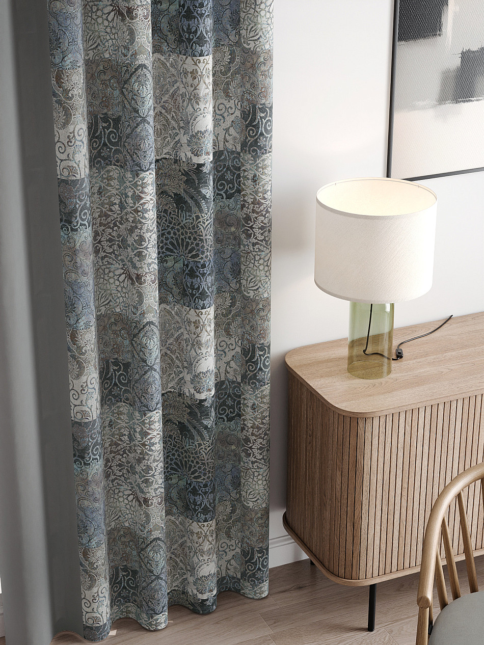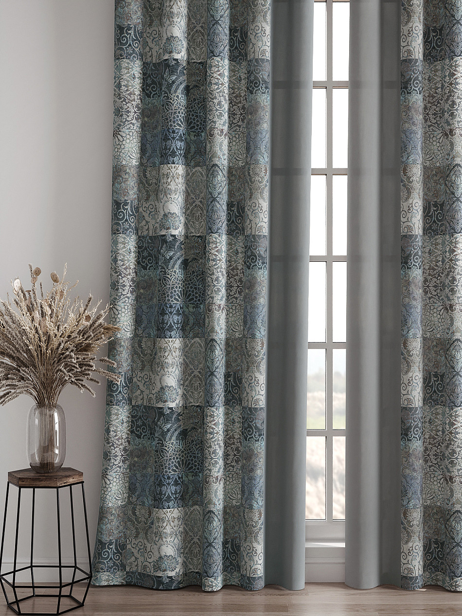 Комплект штор из легкой портьерной ткани (габардин) оформлен печатным рисунком. Печатный рисунок дает широкие возможности обновить интерьер фактически нет требуя ремонта за счет огромного выбора. Ткани с печатным рисунком безопасны и не содержат токсичных веществ. Не смотря на то что, материал легкий, он имеет высокую плотность, мало загрязнятся и не требует особого ухода даже после стирки, что важно для кухонных занавесок. Шторы не выцветают, не растягиваются, превосходно драпируются, образуя струящиеся складки. Прекрасное решение для создания красоты и уюта с помощью уникальных дизайнов.