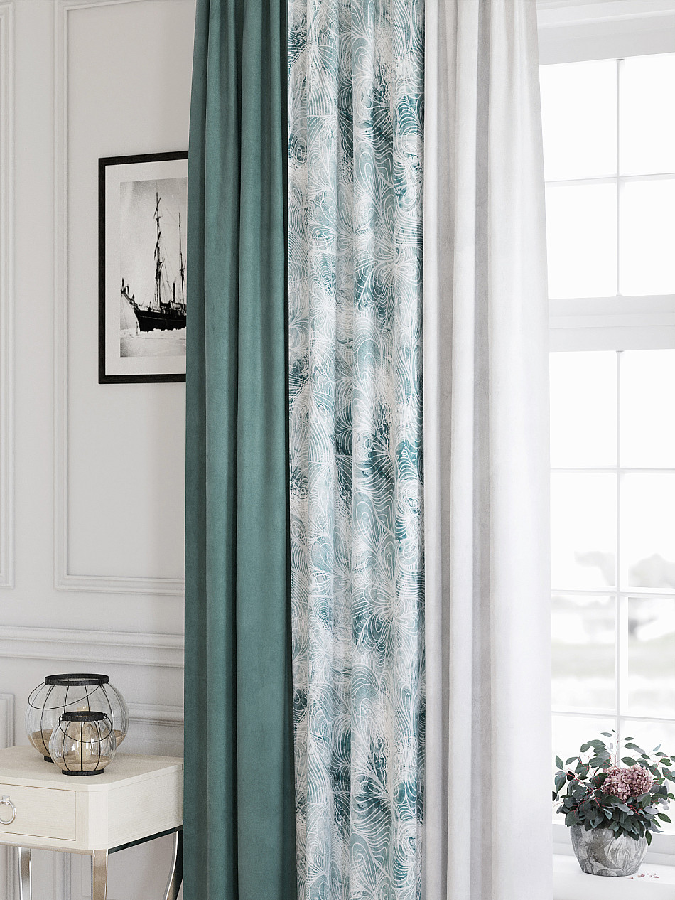Комплект штор из портьерной ткани (Габардин) оформлен печатным рисунком, дополнен однотонной тканью с такой же фактурой в тональность узору. Фактура ткани прекрасно гармонирует с любым интерьером, а печатный рисунок дает широкие возможности обновить интерьер фактически не требуя ремонта за счет огромного выбора. Основа, выполненная путем тройного переплетения нитей, мягкая и приятная на ощупь, напоминает по строению фактуру рогожки. Ткань износостойкая и не требует особого ухода, превосходно драпируется, образуя струящиеся складки. Прекрасное решение для создания красоты и уюта с помощью уникальных дизайнов.