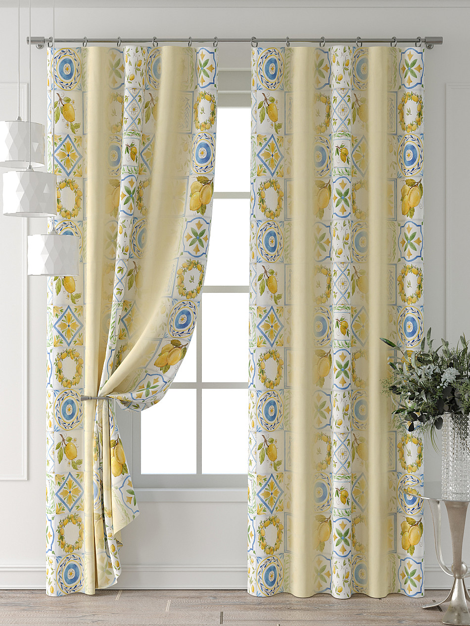 Портьера 2 шт. Подхват - доп.услуга. Комплект штор из легкой портьерной ткани (габардин) оформлен печатным рисунком. Печатный рисунок дает широкие возможности обновить интерьер фактически нет требуя ремонта за счет огромного выбора. Ткани с печатным рисунком безопасны и не содержат токсичных веществ. Не смотря на то что, материал легкий, он имеет высокую плотность, мало загрязнятся и не требует особого ухода даже после стирки, что важно для кухонных занавесок. Шторы не выцветают, не растягиваются, превосходно драпируются, образуя струящиеся складки. Прекрасное решение для создания красоты и уюта с помощью уникальных дизайнов.