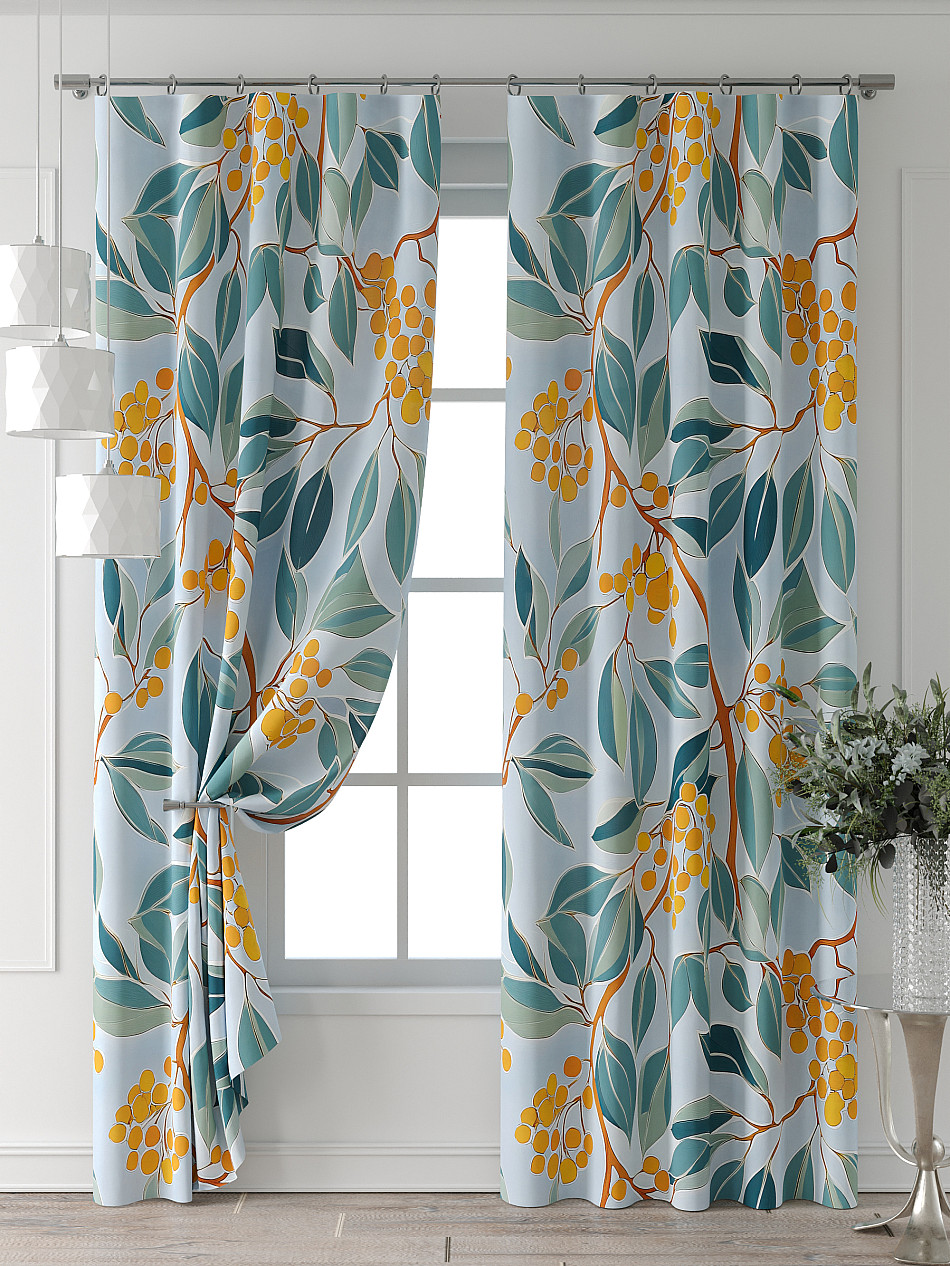 Портьера 2 шт. Подхват - доп.услуга. Комплект штор из легкой портьерной ткани (габардин) оформлен печатным рисунком. Печатный рисунок дает широкие возможности обновить интерьер фактически нет требуя ремонта за счет огромного выбора. Ткани с печатным рисунком безопасны и не содержат токсичных веществ. Не смотря на то что, материал легкий, он имеет высокую плотность, мало загрязнятся и не требует особого ухода даже после стирки, что важно для кухонных занавесок. Шторы не выцветают, не растягиваются, превосходно драпируются, образуя струящиеся складки. Прекрасное решение для создания красоты и уюта с помощью уникальных дизайнов.