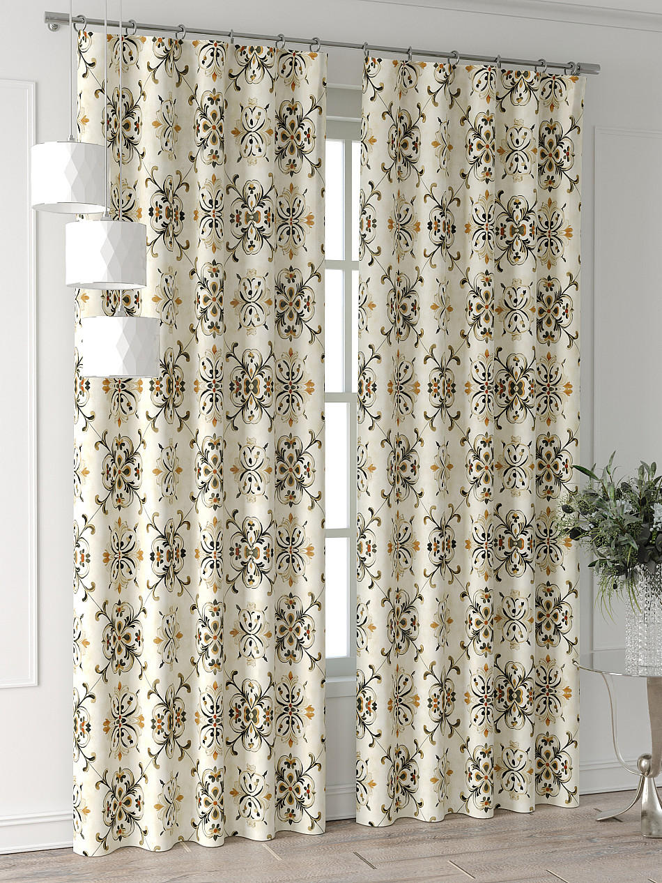 Портьера 2 шт. Подхват - доп.услуга. Комплект штор из легкой портьерной ткани (габардин) оформлен печатным рисунком. Печатный рисунок дает широкие возможности обновить интерьер фактически нет требуя ремонта за счет огромного выбора. Ткани с печатным рисунком безопасны и не содержат токсичных веществ. Не смотря на то что, материал легкий, он имеет высокую плотность, мало загрязнятся и не требует особого ухода даже после стирки, что важно для кухонных занавесок. Шторы не выцветают, не растягиваются, превосходно драпируются, образуя струящиеся складки. Прекрасное решение для создания красоты и уюта с помощью уникальных дизайнов.