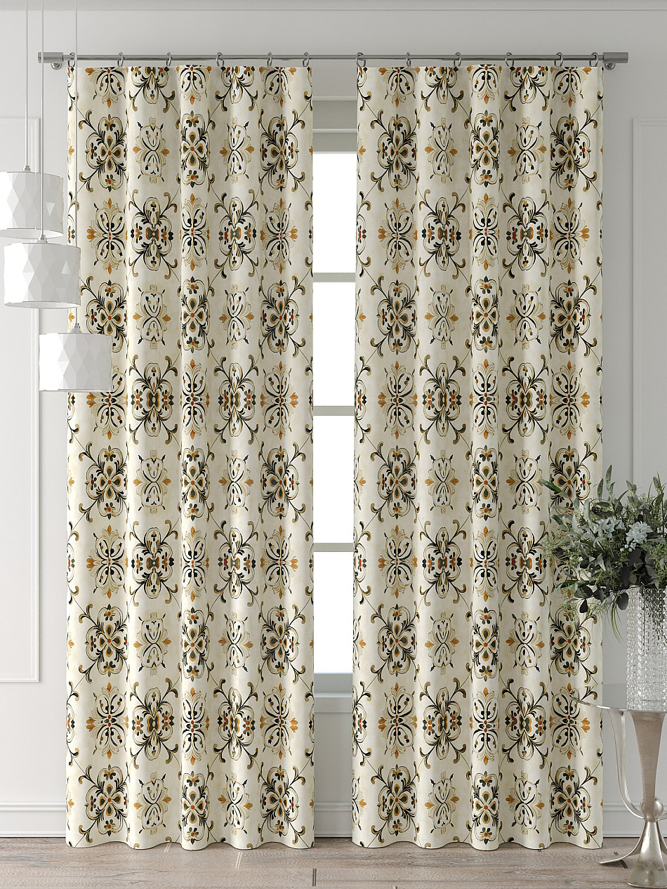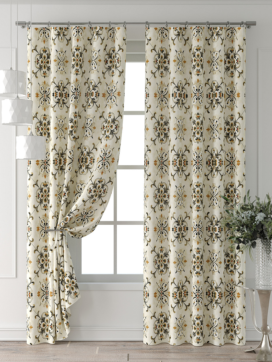 Портьеры 2 шт: Комплект штор из портьерной ткани с печатным рисунком. Фактура ткани прекрасно гармонирует с любым интерьером, а печатный рисунок дает широкие возможности обновить интерьер, фактически не требуя ремонта, за счет огромного выбора. Ткань износостойкая и не требует особого ухода, превосходно драпируется образуя струящиеся складки. Прекрасное решение для создания красоты и уюта с помощью уникальных дизайнов.