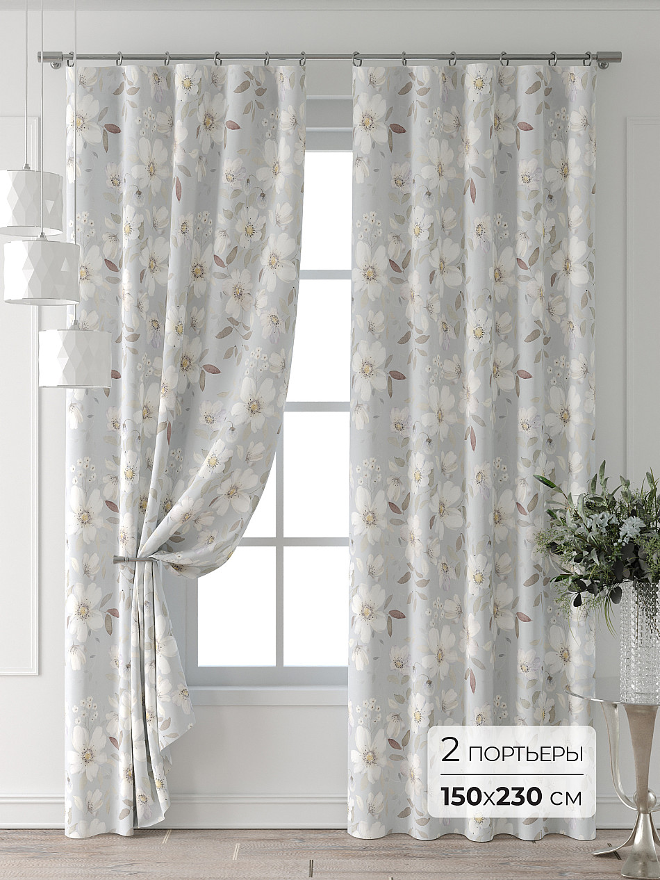 Портьера 2 шт — 150х230 см. ( Изменить высоту) Крепление: шторная лента (крючки), кулиска Подробнее