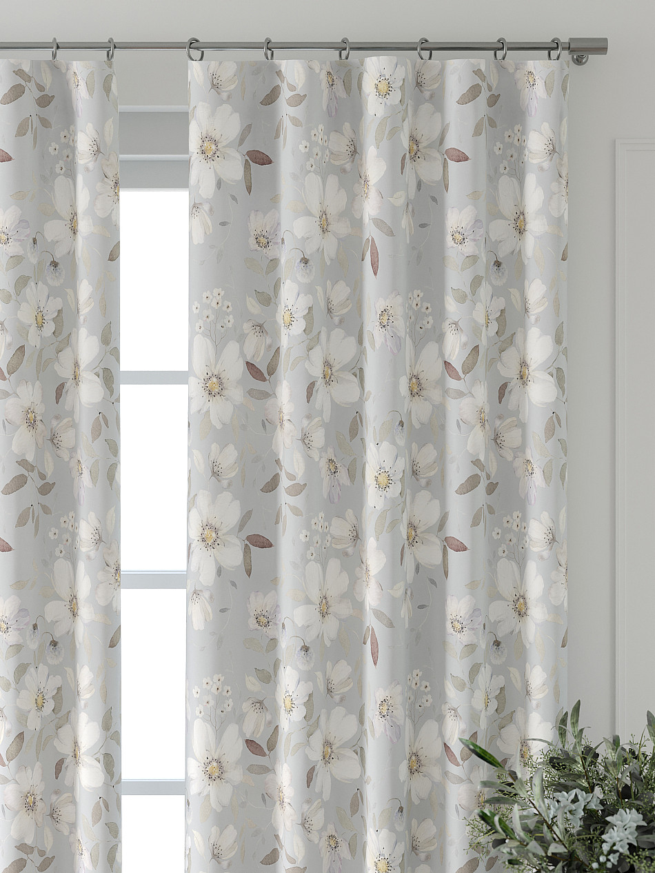 По верхнему краю портьер пришита шторная тесьма 6 см, с ее помощью затянув узелки от кордовых нитей с обеих сторон и стянув их до нужного размера можно сформировать округлые складки, далее вставить крючки в кармашки и повесить на карниз. Обязательно проверьте кордовые нити – они должны быть надежно завязаны, в противном случае во время стягивания они могут вылететь. Шторная тесьма имеет два ряда кармашков, с их помощью можно регулировать не только длину, но и ширину. Такое крепление подходит для всех типов карнизов.